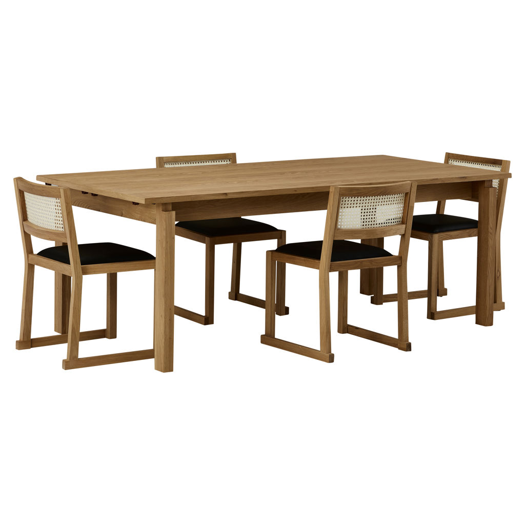 The Annex table transforms from faithful everyday meal to special occasion hero without skipping a beat. Expert craftsmanship and attention to detail are evident from every angle, from the custom notches on the legs that give the tabletop a floating effect, to the natural matte finish that has been hand-applied to each piece. Conversation will flow easily, no matter how many people you're dining with, thanks to a built-in extension that effortlessly expands the table from an intimate setting to a lively entertainment zone. The more the merrier, after all.