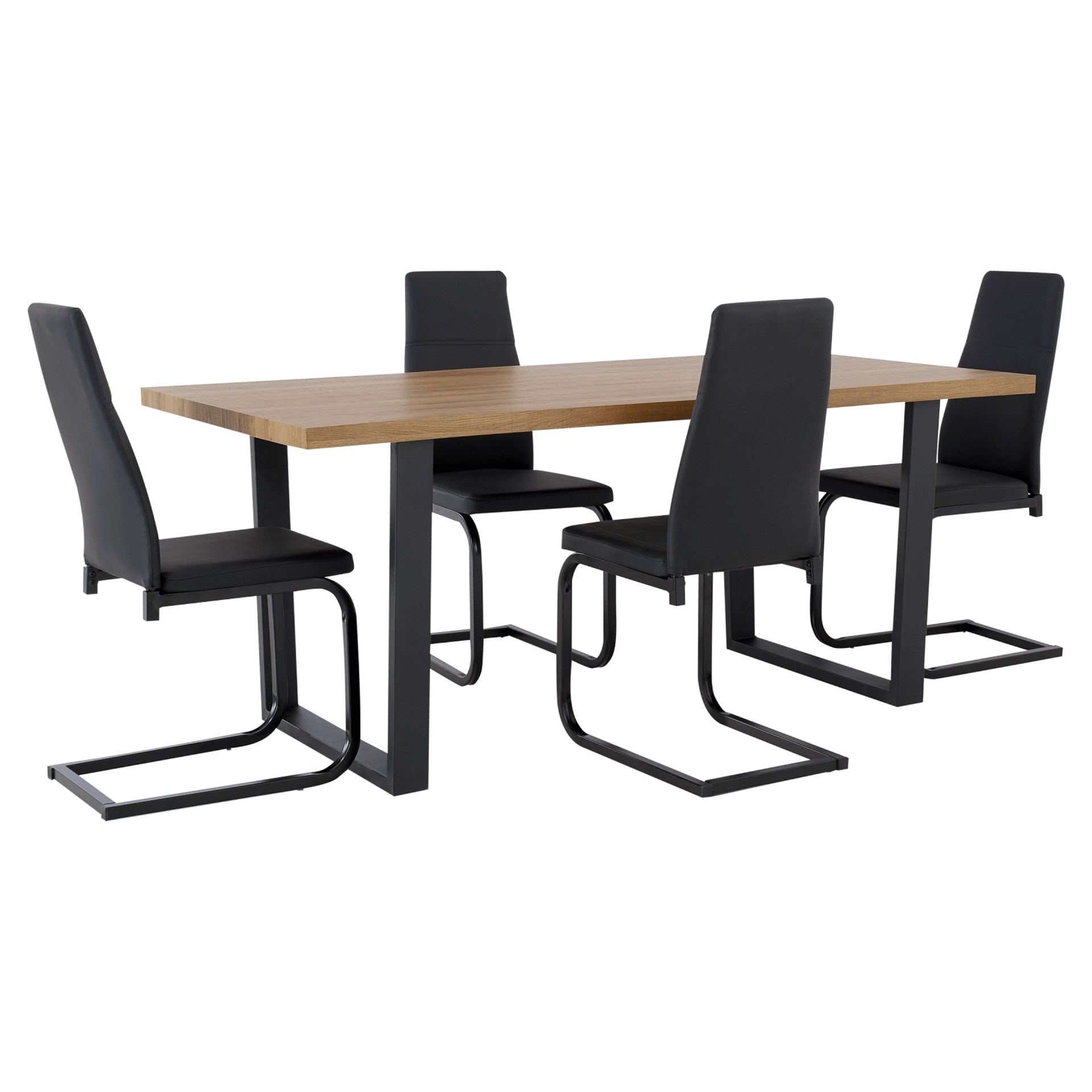 The four high-quality synthetic leather chairs combine comfort and practicality. Their padded seats and tall backs ensure a pleasant dining experience, while their easy-care material resists stains and everyday wear.