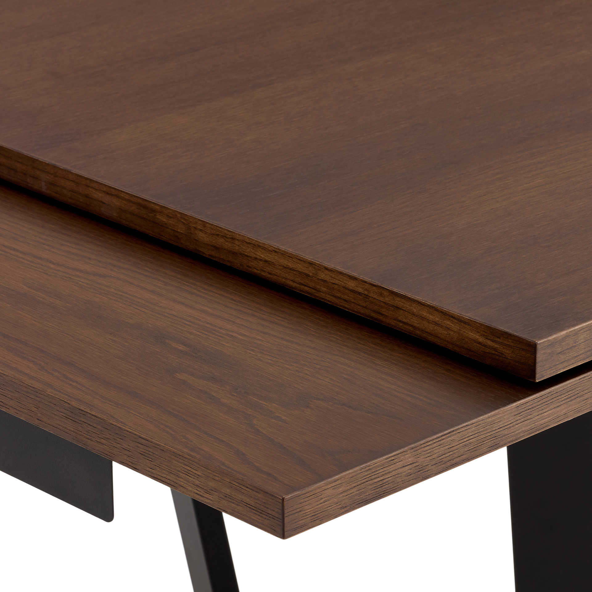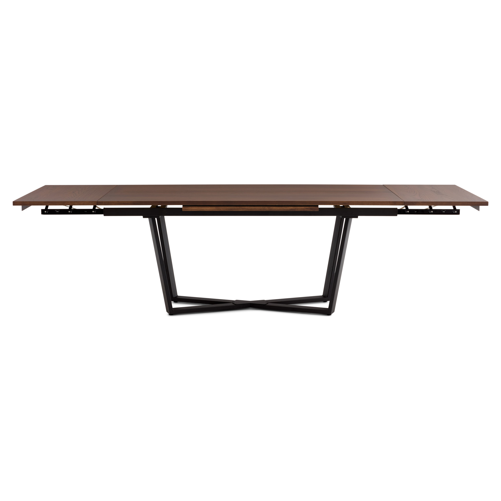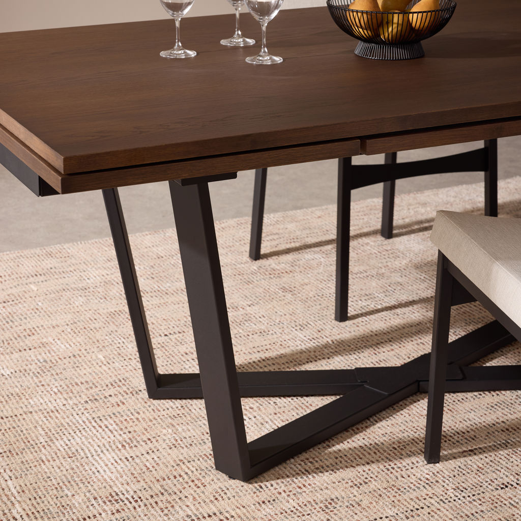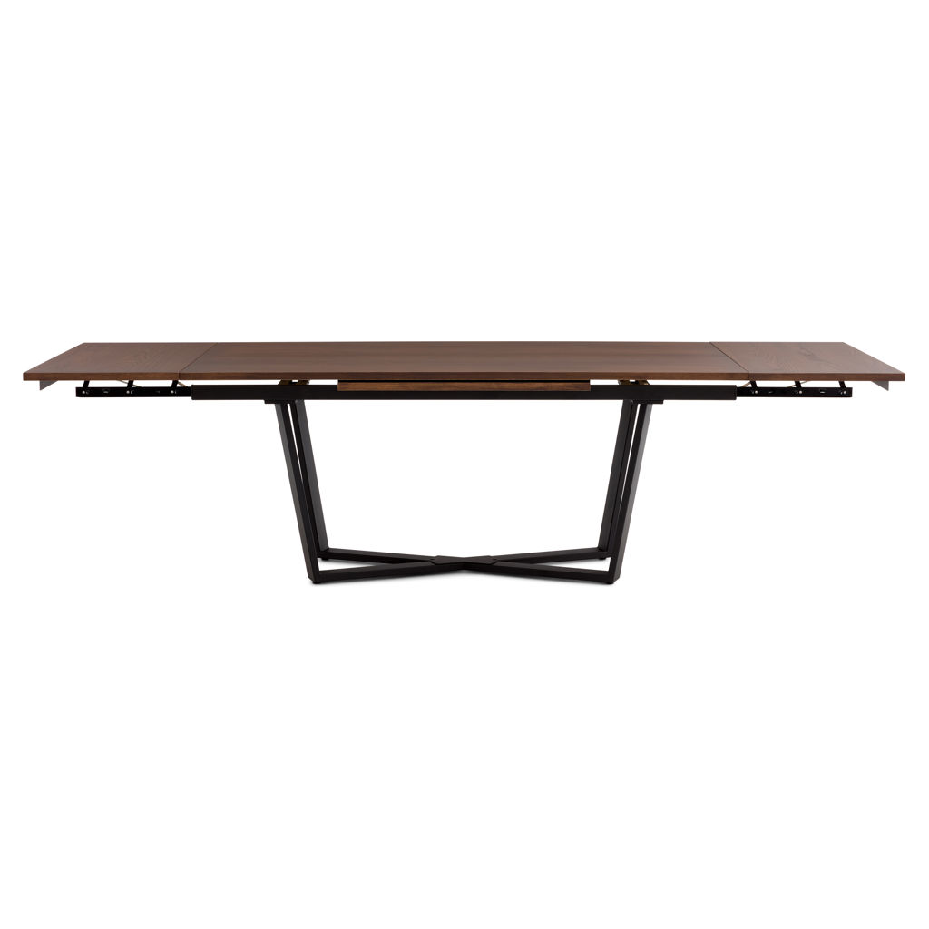 The contemporary CHARLIE dining table features a metal cross base and a 3-in-1 design. Its hydraulic sliding system allows you to deploy two side extensions at the end of the table to quickly adjust to the number of guests. At last, you can enjoy the pleasures of life in good company.