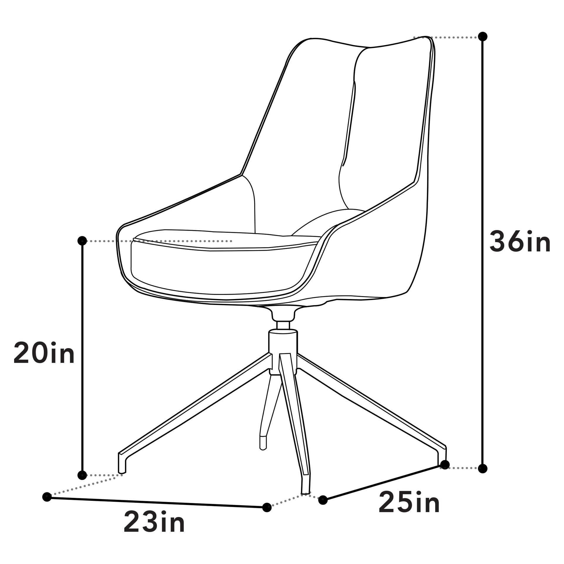 • Sofia Swivel Chair : 23 X 25 X 30