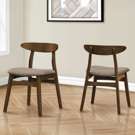 Elevate your dining experience with our trendy and stylish set of 2 dining chairs. Designed for everyday casual family dining and entertaining, these side chairs are both comfortable and durable with padded foam cushioning upholstered with soft beige fabric.
