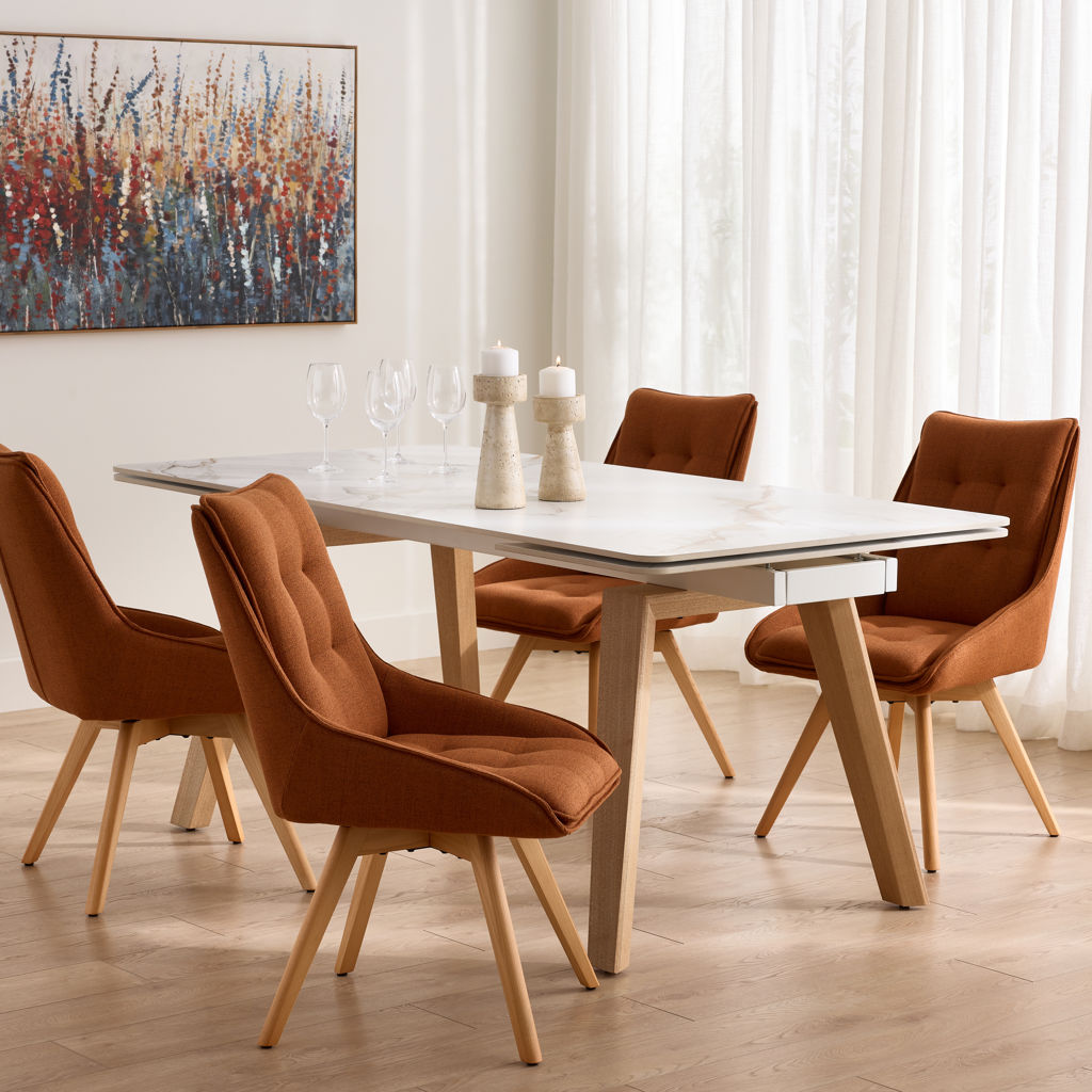 Featuring a scratch resistant ceramic top, this table stands out with on trend colors that enhance the charm of your interior. Two practical extensions allow you to easily increase its capacity, making it adaptable to any occasion.