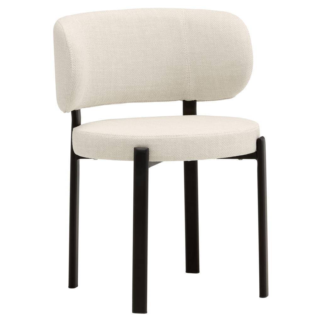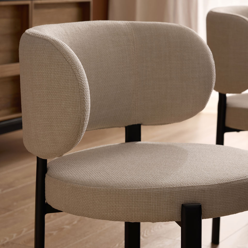 Upholstered in woven beige fabric, the Lily chair adds a soft, luminous touch to your dining space while remaining timeless and understated.