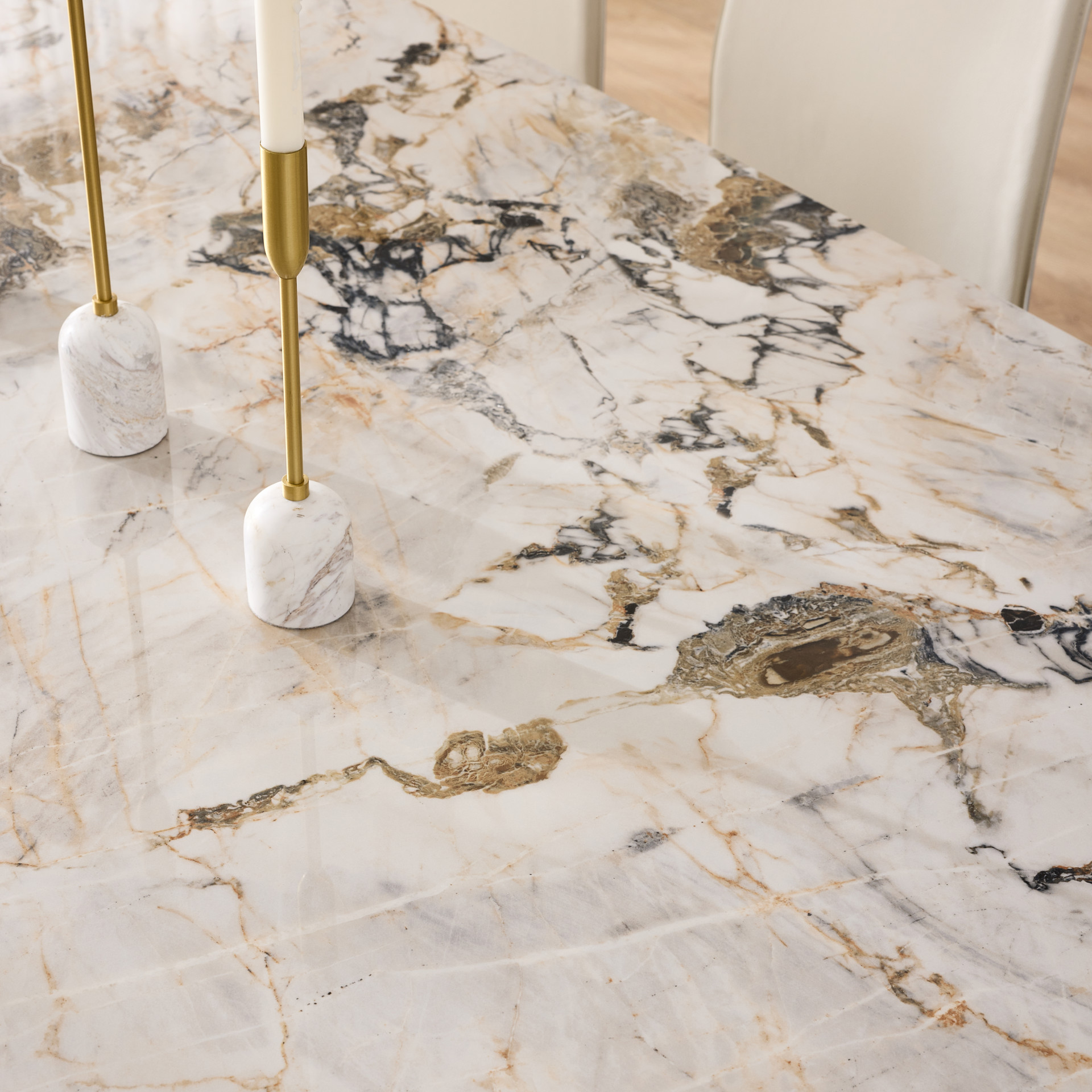 Designed for stylish entertaining, this ensemble stands out with its elegant tabletop and comfortable seating, offering an enjoyable dining experience for everyday meals as well as special occasions.