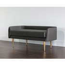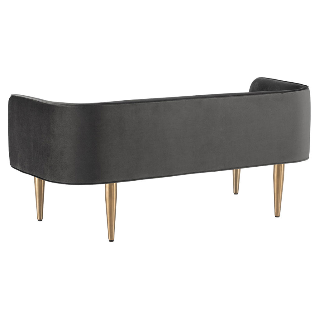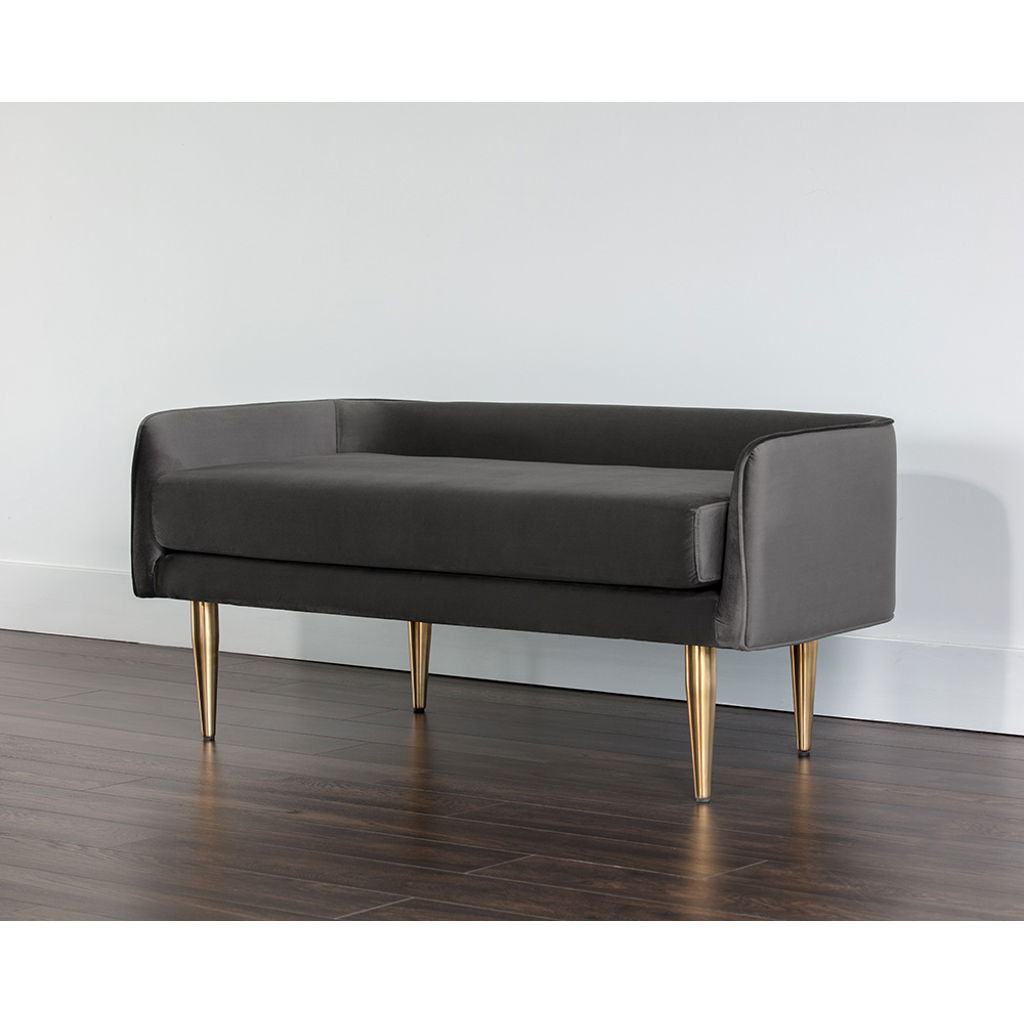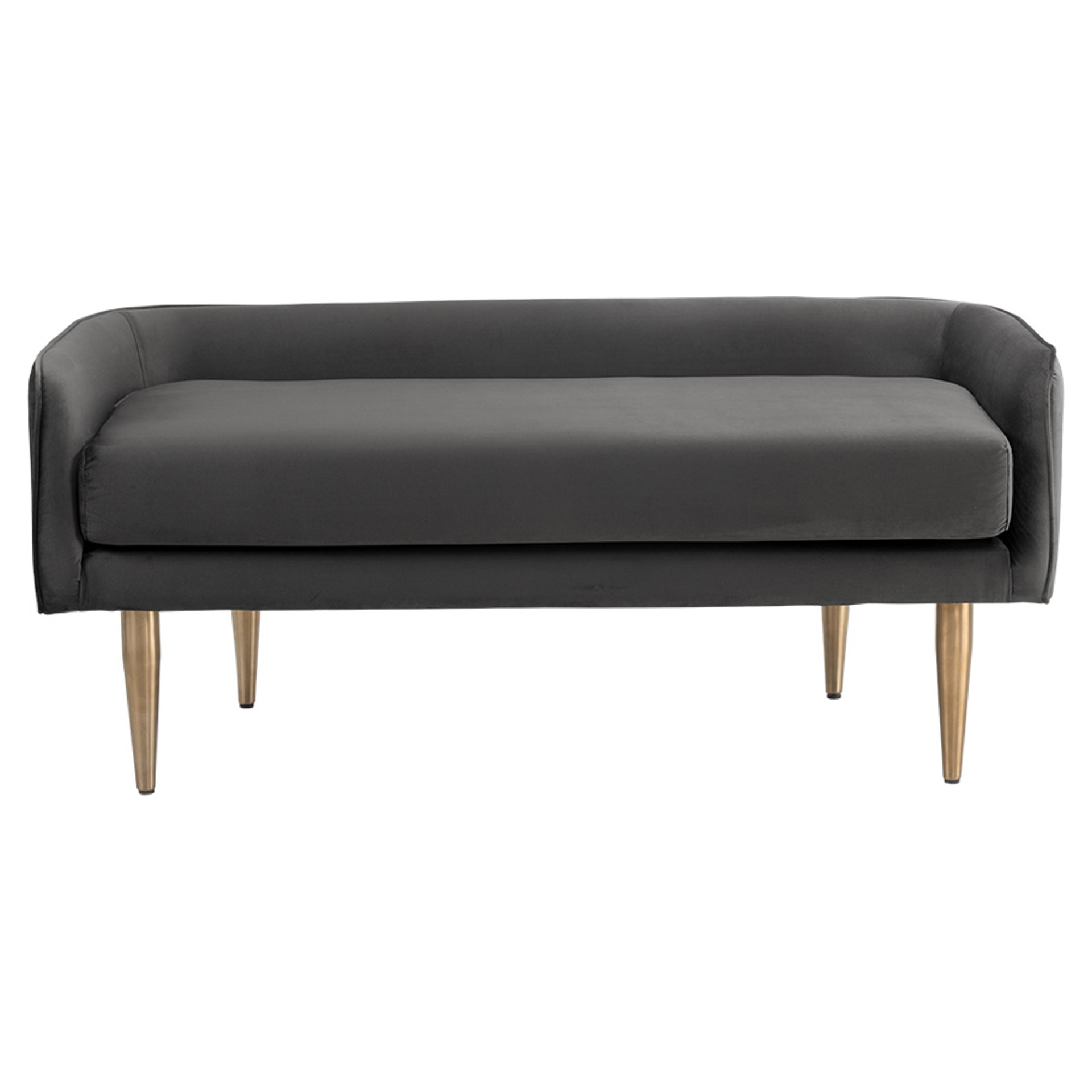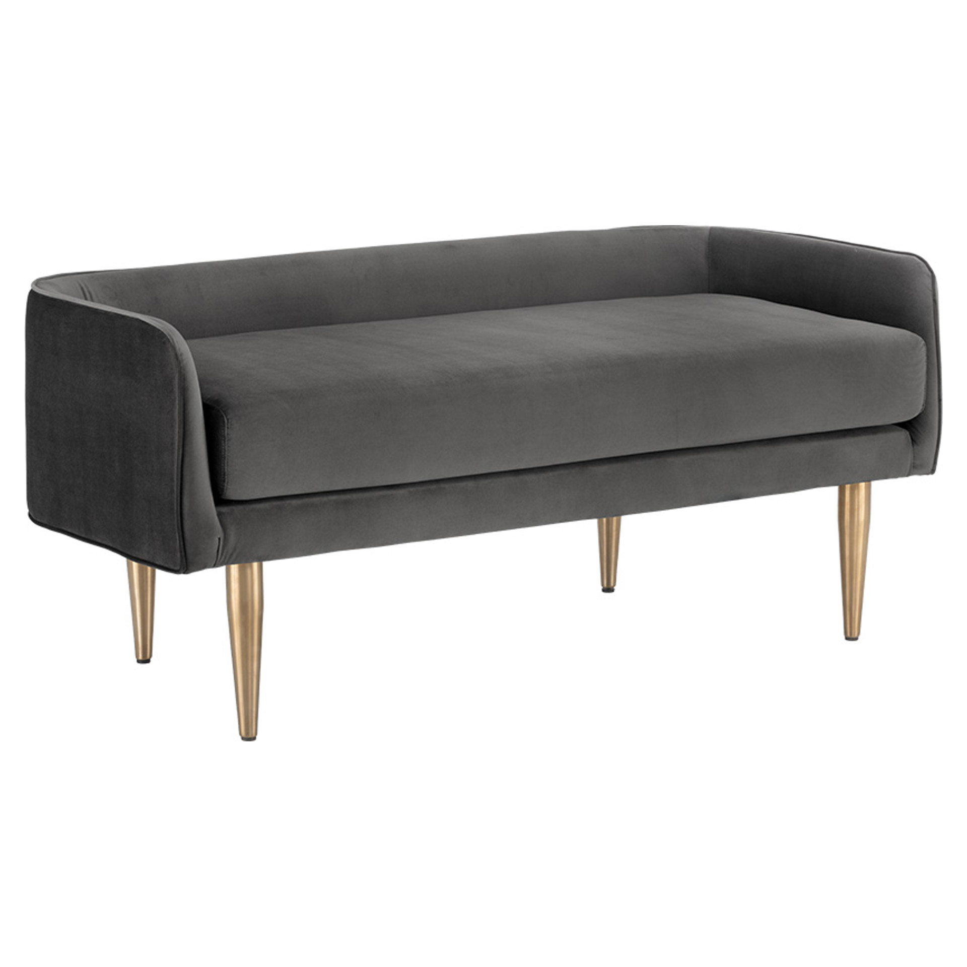 A bench delicately designed to be housed in the foyer, living room, at the foot of a bed, or in a custom dressing room.