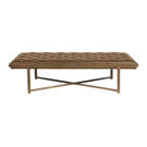 The Kayla bench combines contemporary elegance with refined comfort to elevate your space. Its quilted matte brown faux leather offers a luxurious texture that stands up beautifully to everyday wear, while the gold-toned frame adds a sophisticated touch to your décor.