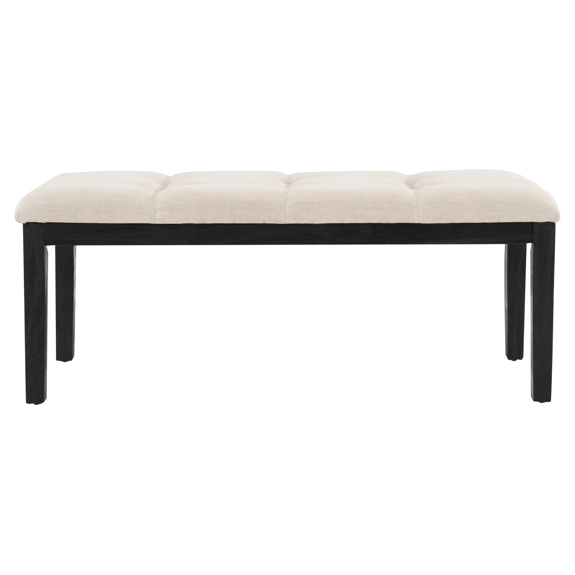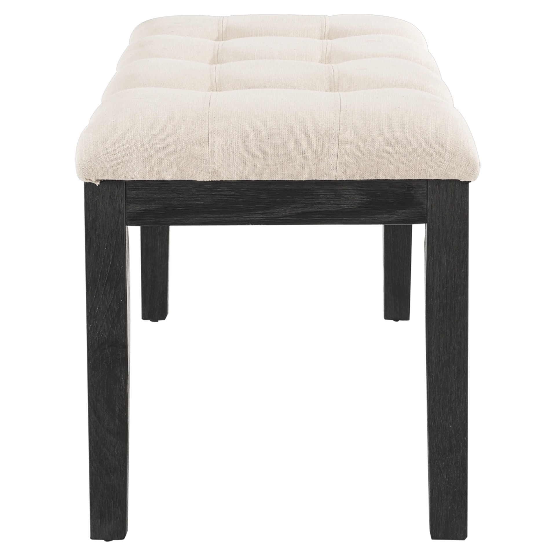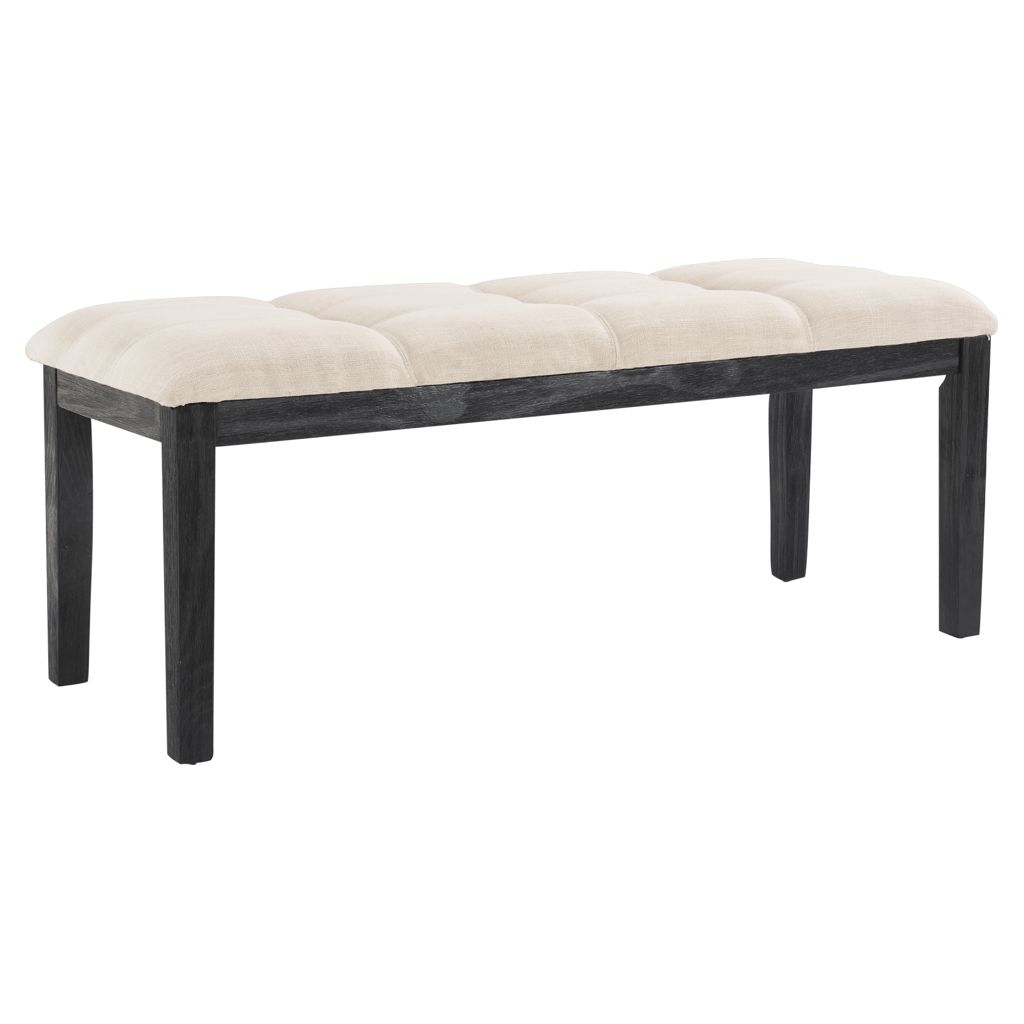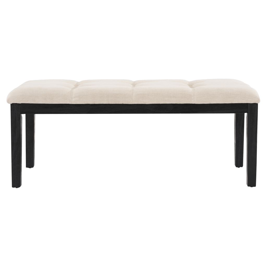 Beige Upholstered Bench with Dark Brown Pine Legs