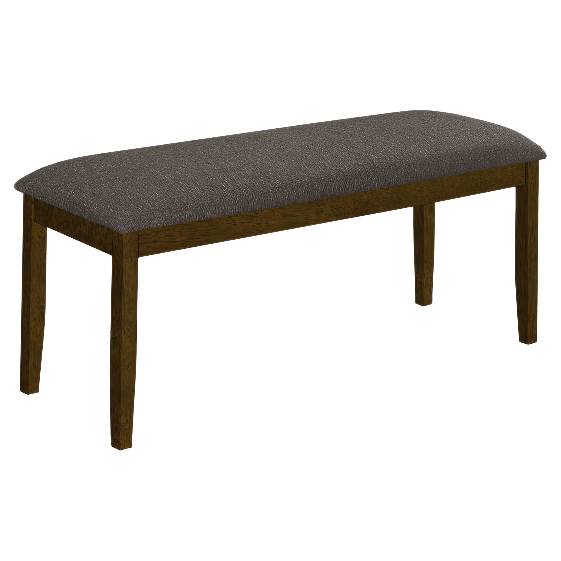 This bench is the perfect combination of fashionable style and practical design. With a walnut brown solid wood frame and sturdy brown fabric upholstery, this 44" rectangular bench is an attractive and comfortable seating addition to any dining room, kitchen, living room, hallway, or entryway.