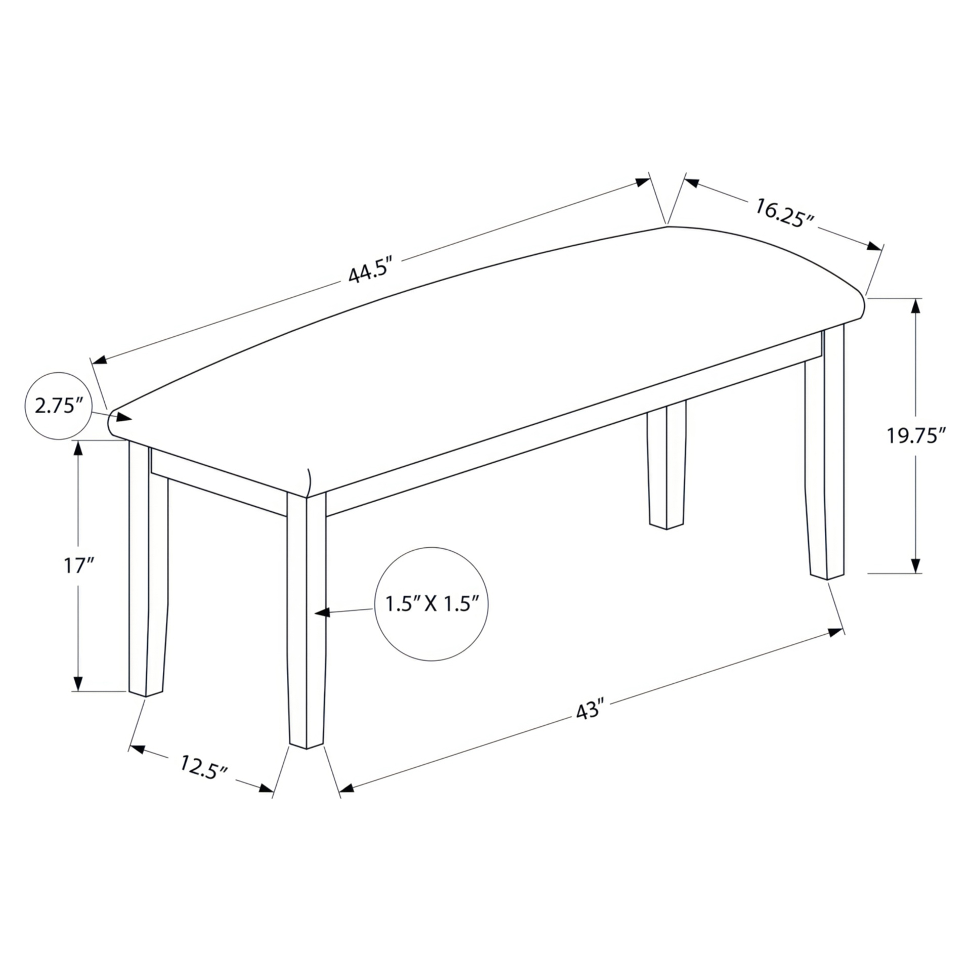 Dining Bench Monarch Specialties I 1397