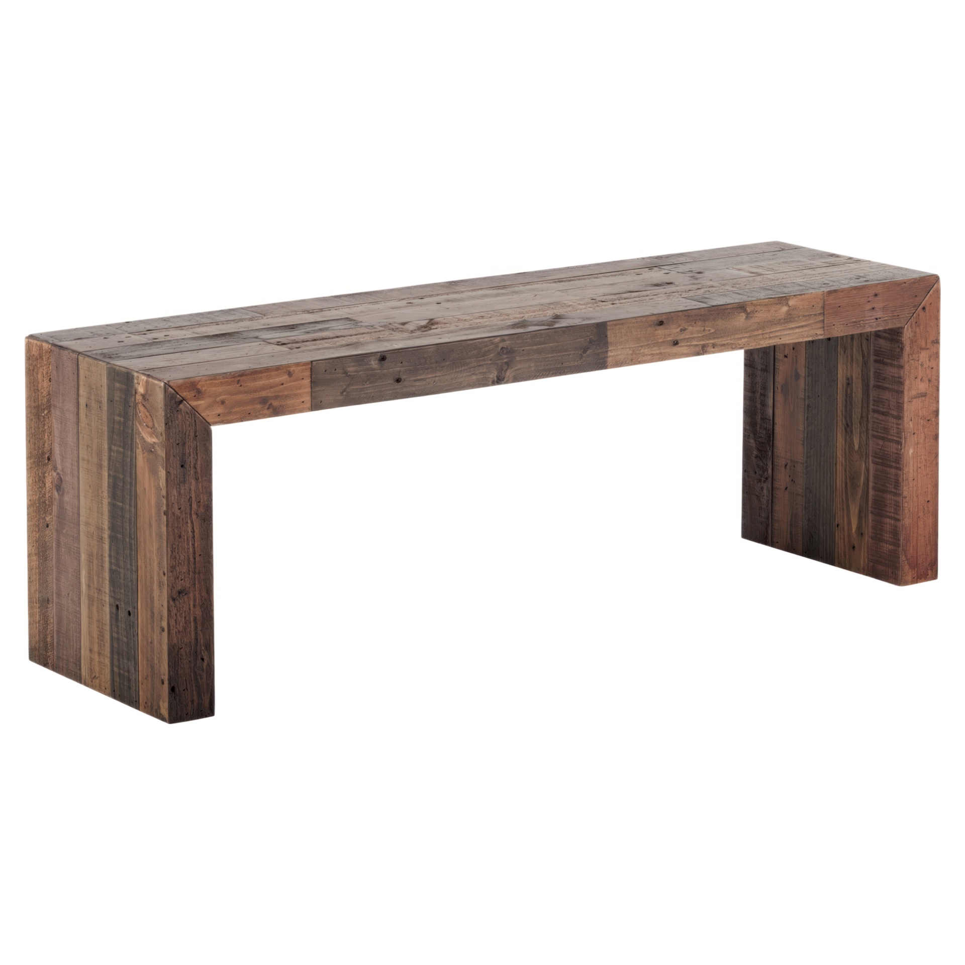 Made with FSC Certified solid pine, this bench brings rustic style to your dining space and can fit up to two people. Note the unique stain to each piece and the subtle hints of its past life.