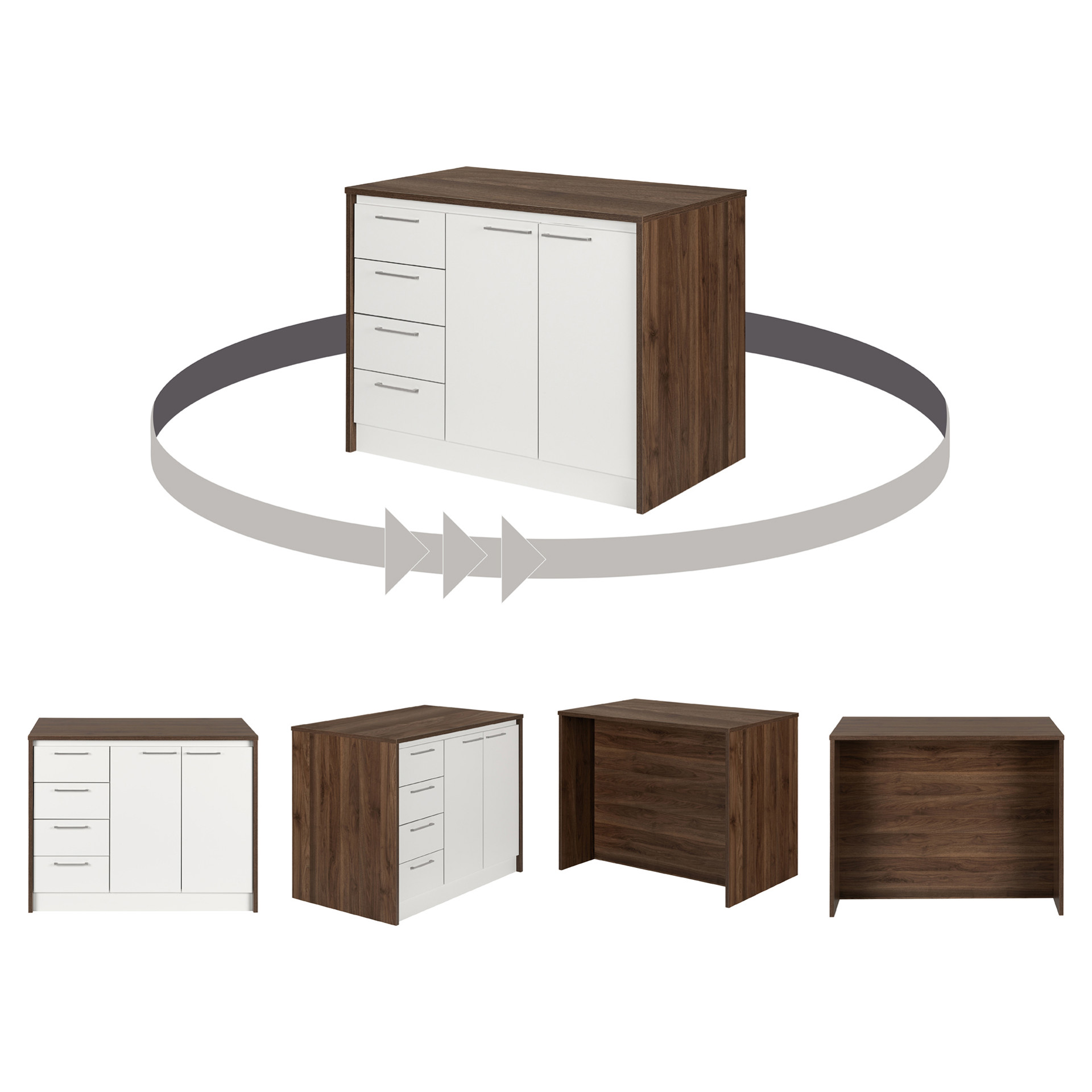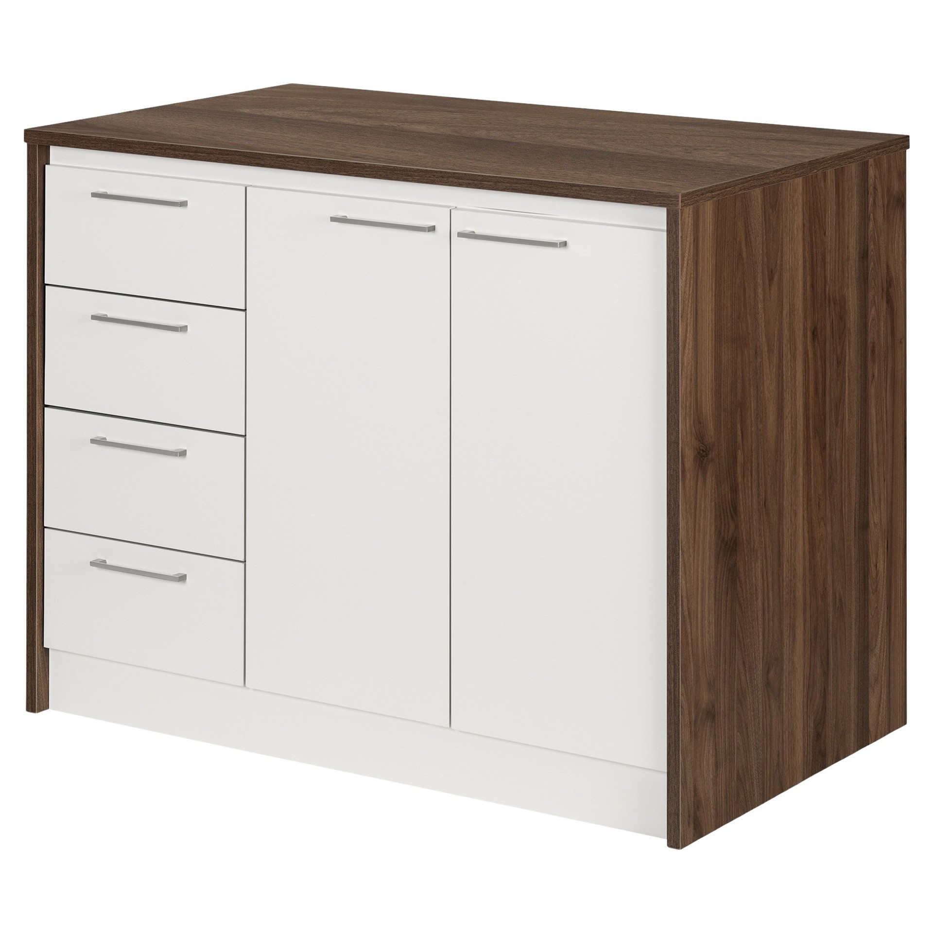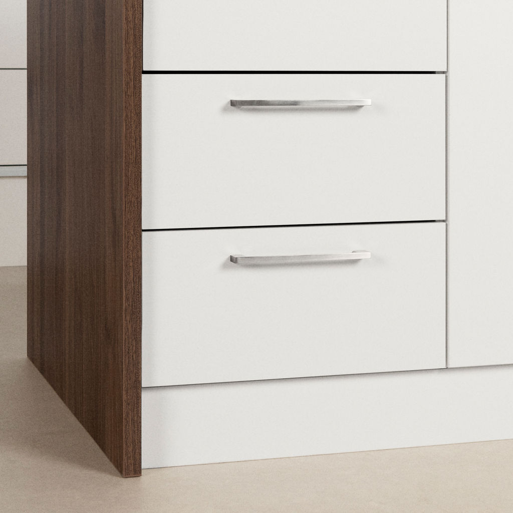 Enhance the look of your kitchen with this contemporary countertop featuring a trendy and sophisticated look. Its slim metal handles and solid surface will add a sleek and distinguished touch to your room. In fact, the surface and sides of this piece are made of melamine, which makes them water and scratch-resistant. It will stay in excellent condition even after hundreds of uses!
