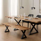 Bring a touch of character to your dining room with this bench featuring a rustic-chic yet contemporary design.