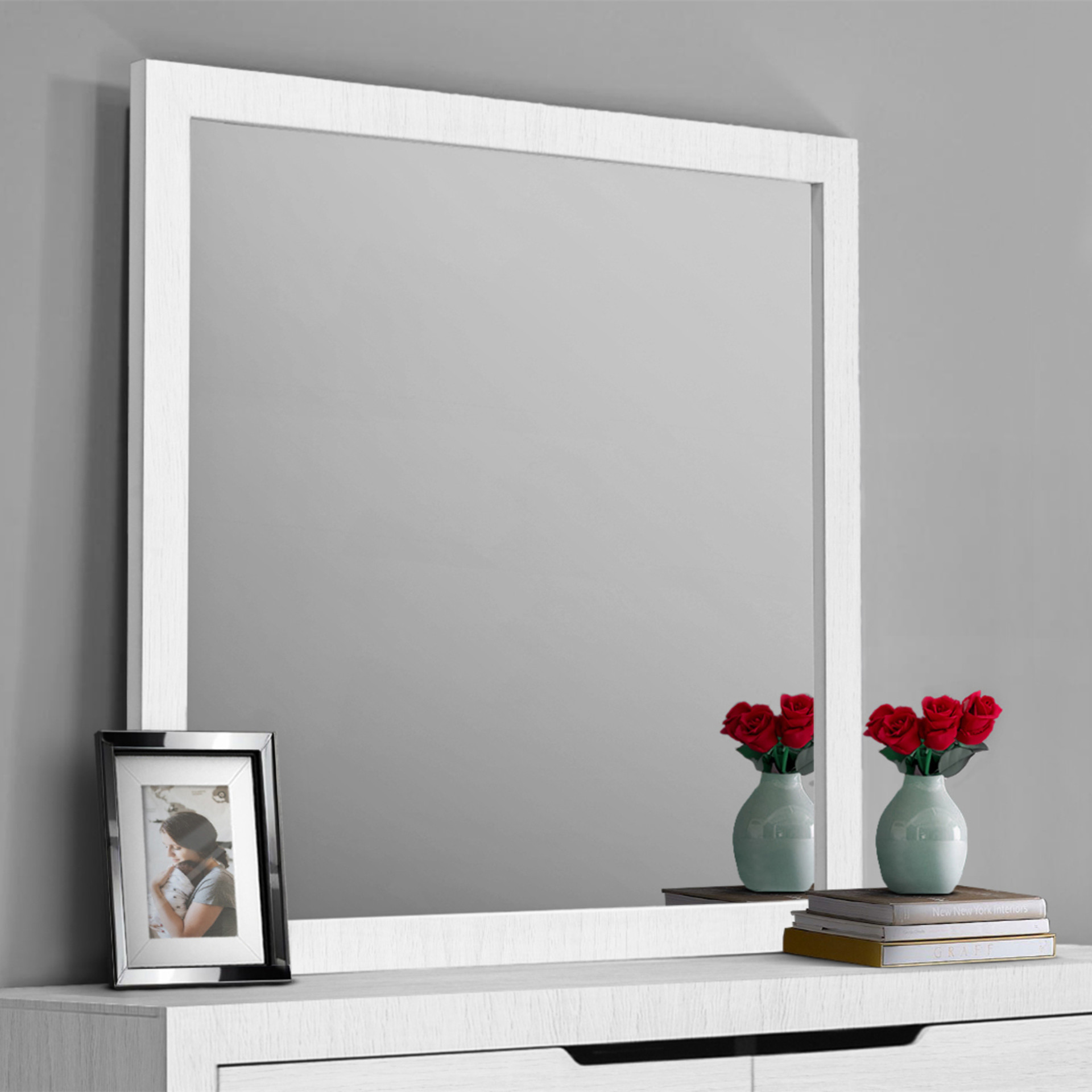 Featuring a chic white wood-grain finish, this square mirror adds a fresh, airy vibe to any contemporary interior.