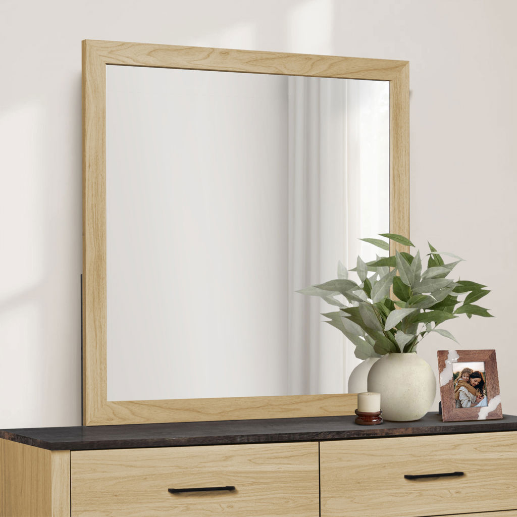 Featuring a stylish light oak laminate finish, this square mirror brings a fresh and bright feel to your space.