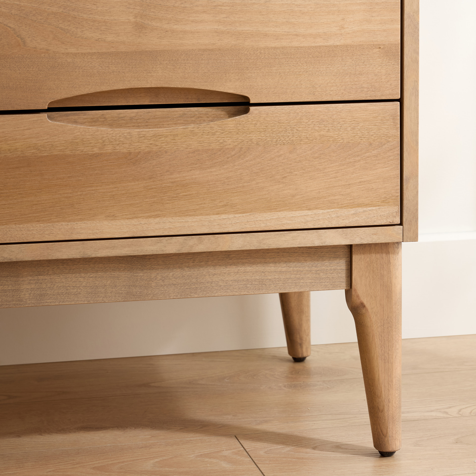 • 1x Chestnut-finish cherry veneer nightstand with 2 drawers Quadro glidders.