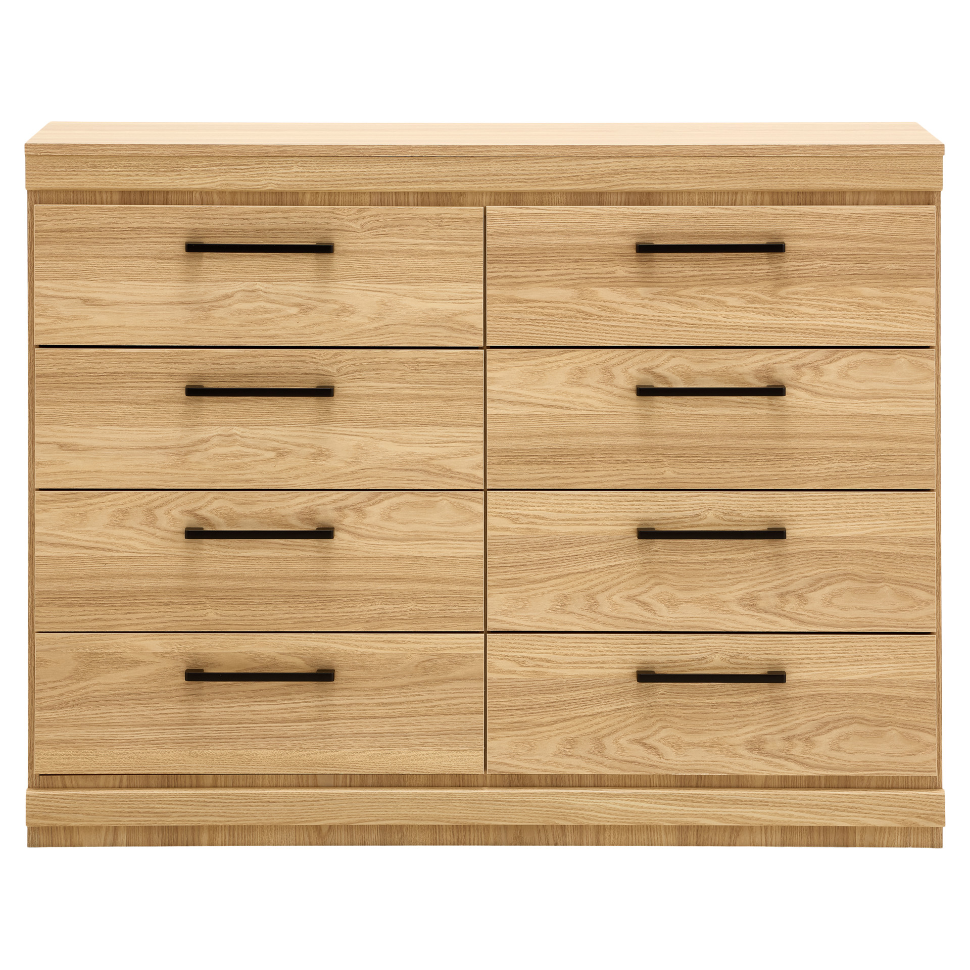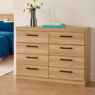 Give your space a stylish storage solution with this 8-drawer double dresser. The straight lines and natural texture of the wood create a warm, minimalist atmosphere. The black metal handles provide a refined contrast and underline the understated character of the piece. This dresser makes it easy to organize clothes, accessories or household linen.