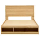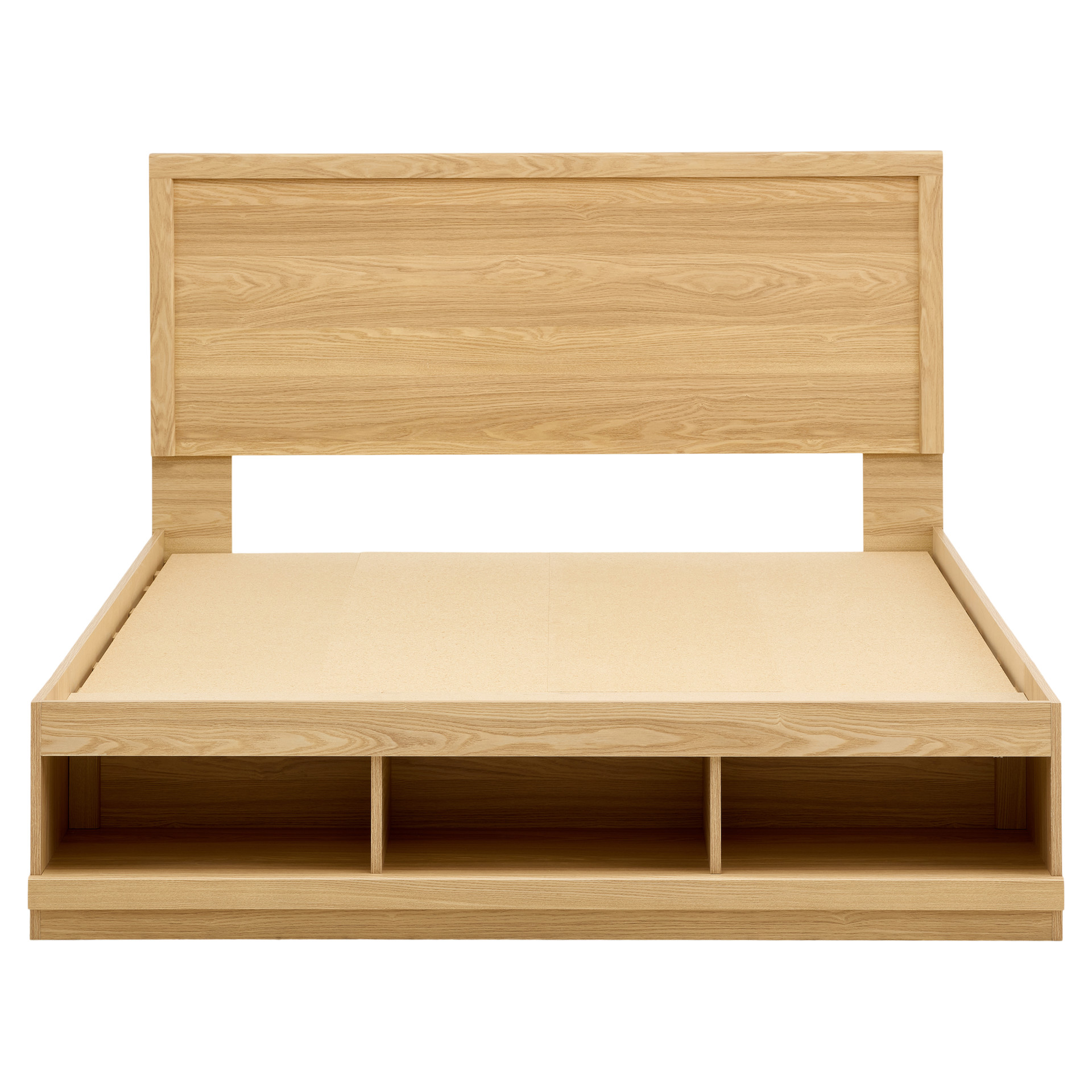 Bring a modern, soothing atmosphere to your bedroom with this set in a natural light wood finish. Combining functionality and sleek style, the set includes a platform bed with built-in storage, a practical nightstand and a spacious dresser with many drawers.