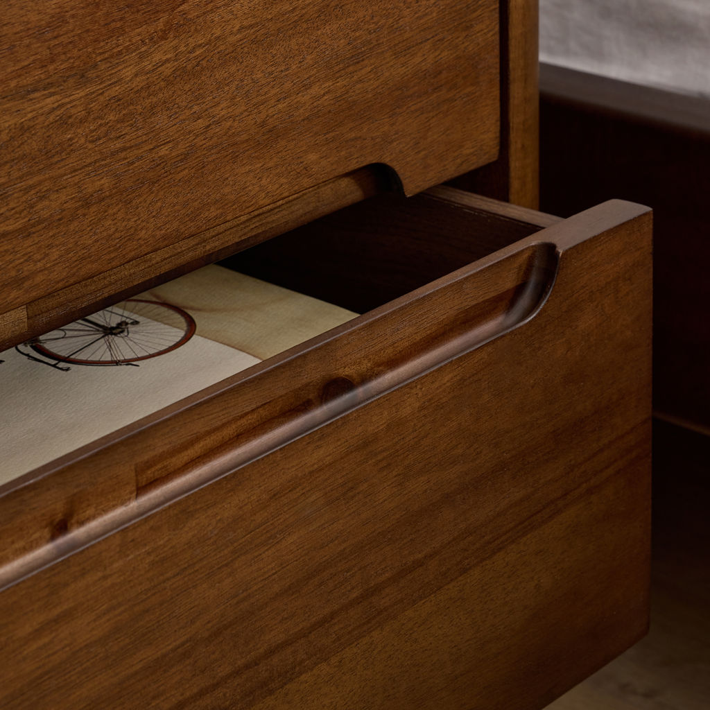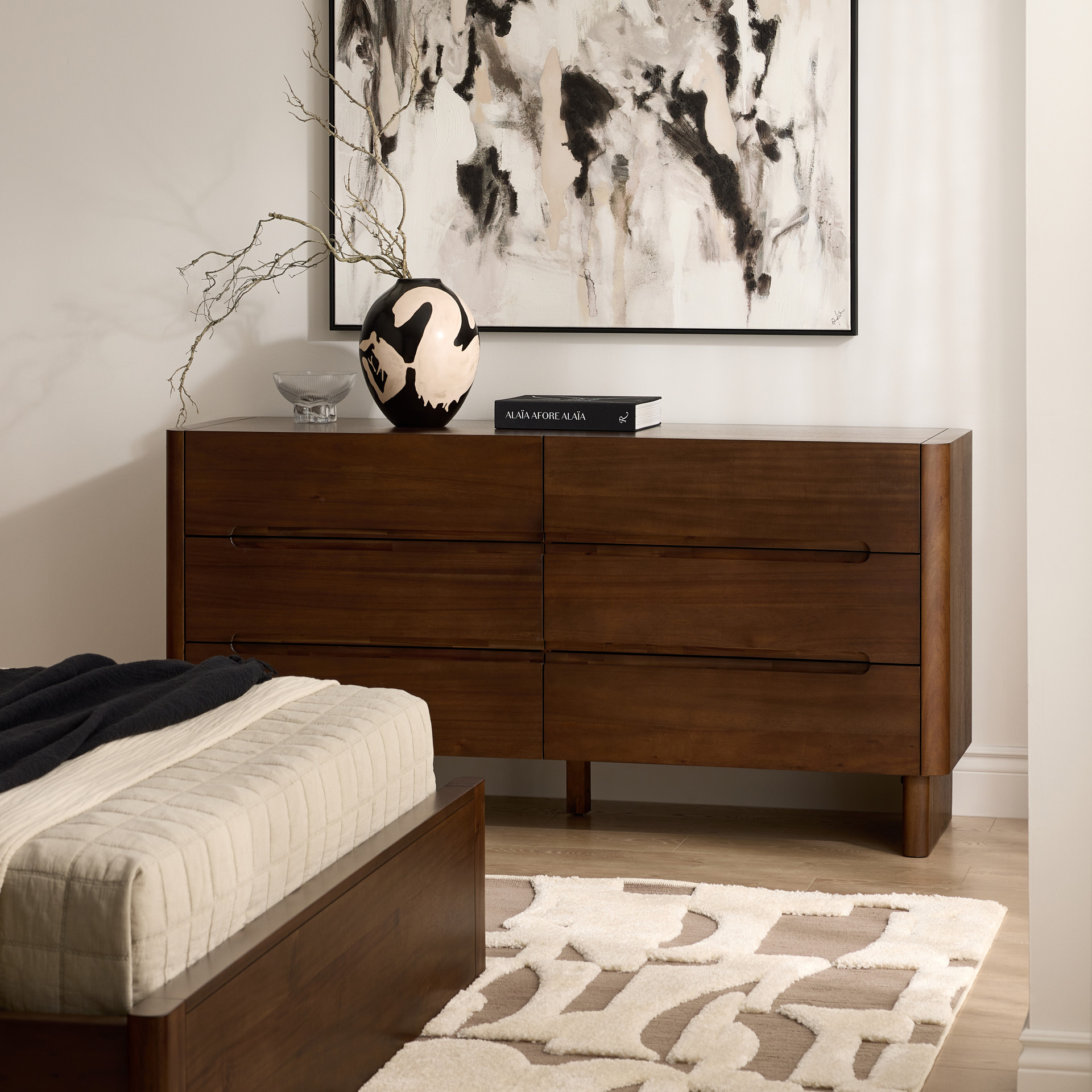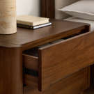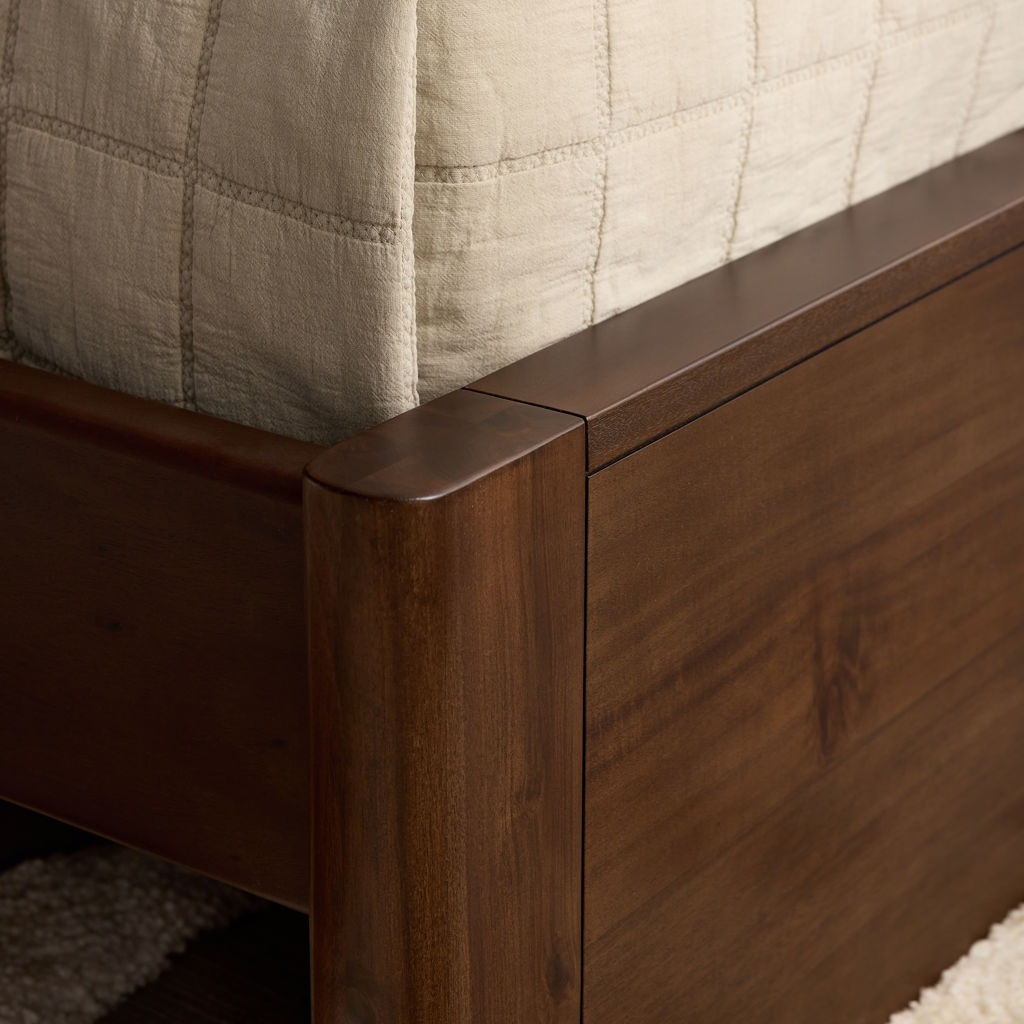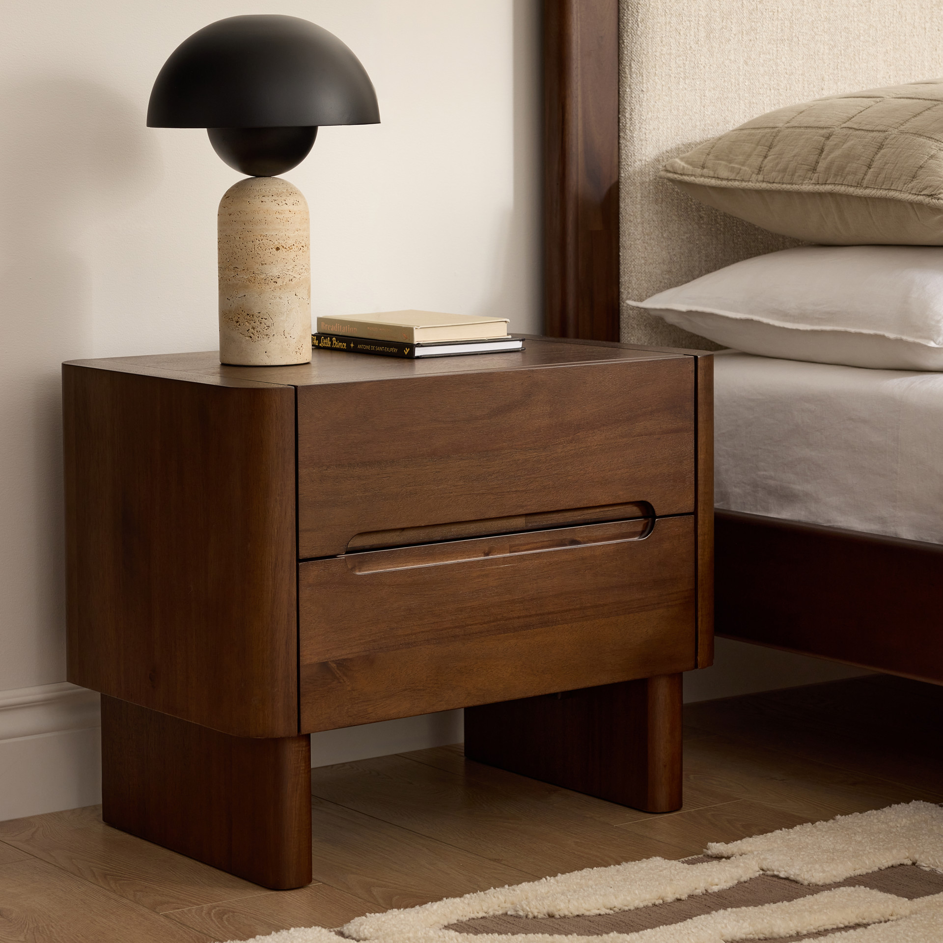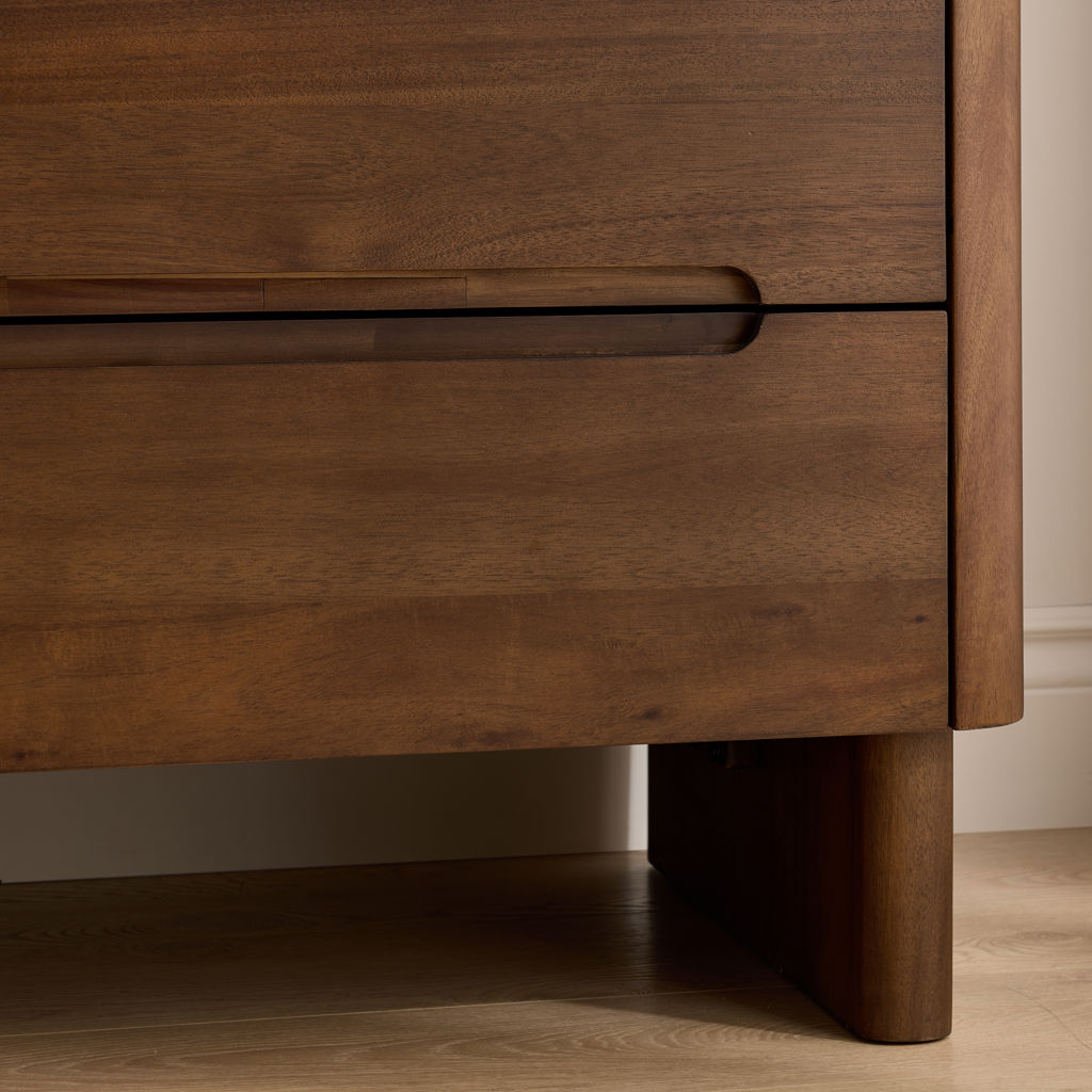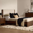 Create a harmonious and inviting bedroom with this acacia-veneered furniture set.