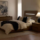 Add a warm, modern touch to your bedroom with this contemporary bed, enhanced by integrated lighting directly in the headboard.