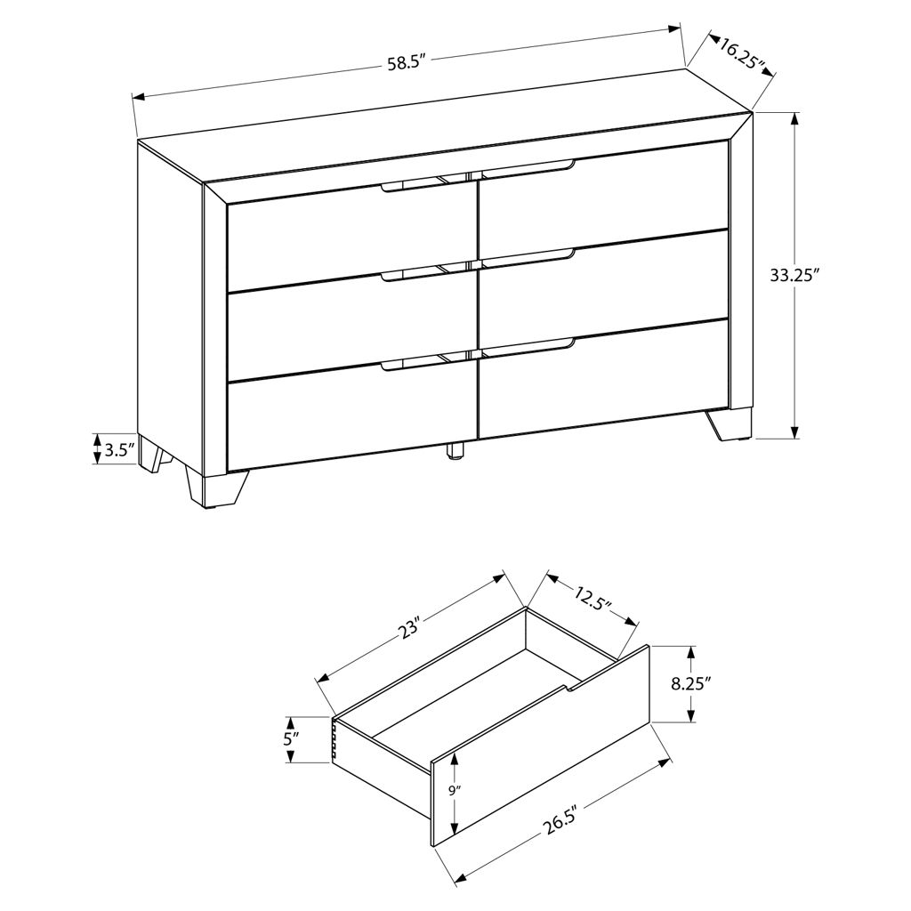 • Series I 524 6-drawer Dresser : 58 1/2 X 16 1/4 X 33 1/4