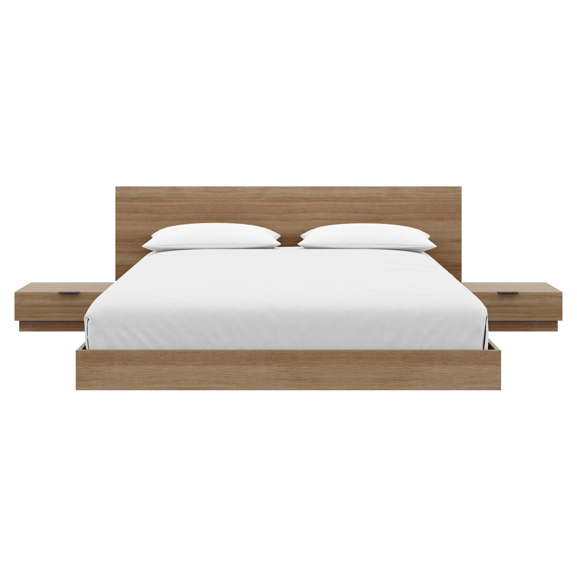 Transform your bedroom into a cohesive and inviting space with this complete set, featuring a queen platform bed and two matching nightstands. The bed provides a solid, enveloping base paired with a full-width headboard that elegantly defines your sleeping area. Its clean, streamlined design helps you create a calm and well-structured environment.