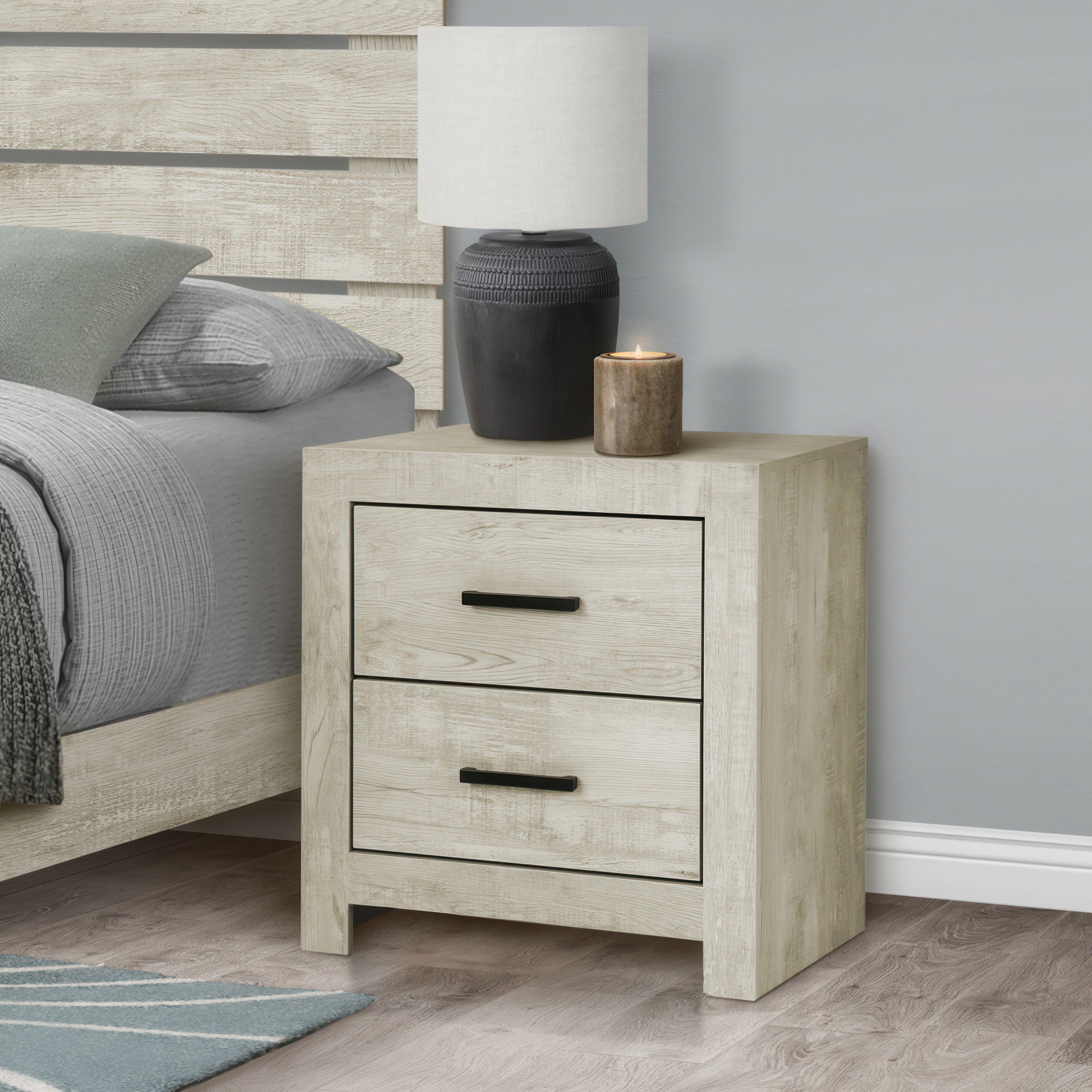 Add practical and stylish storage beside your bed with this chic 2-drawer nightstand in a contemporary white oak finish. Crafted with a wooden frame using sustainable manufacturing principles, this nightstand is built to stand the test of time.