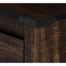 The melamine finish perfectly mimics the look of aged natural wood, adding warmth and character to your bedroom. Black metal handles bring a distinctive, modern touch to the design.