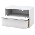 This nightstand combines understated elegance with practicality. Its sleek design fits seamlessly into any décor, while the bright white finish brings a refreshing touch to your bedroom.