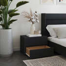 The open top shelf provides easy access to your nighttime essentials, books, tablet, headphones, or phone. The semi-open compartment allows you to neatly store cables, thanks to the built-in cable opening. The spacious drawer keeps everything you need close at hand while maintaining a tidy look.