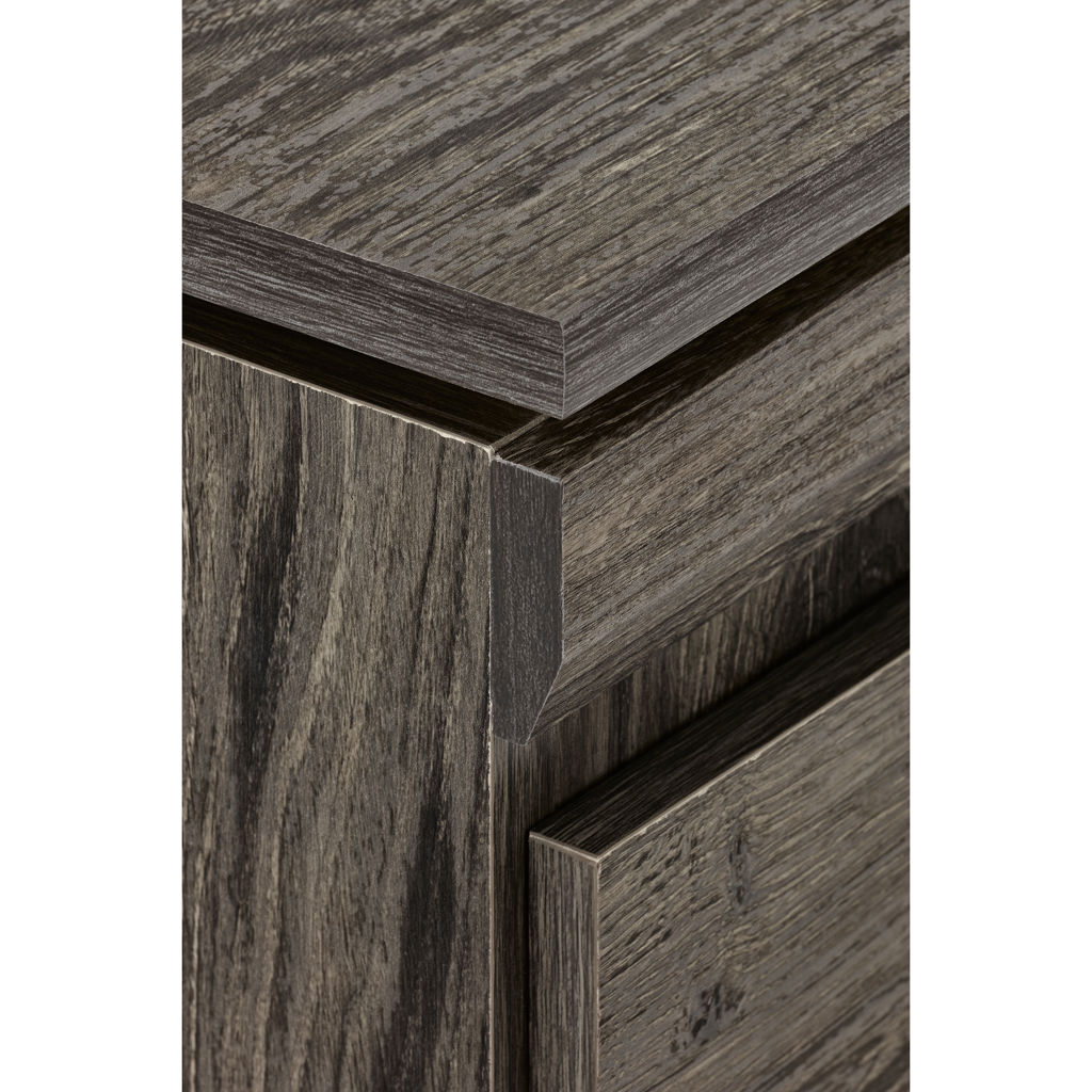 This nightstand combines functionality and elegance with two spacious drawers offering practical storage for all your essentials. Its melamine finish with an authentic wood grain adds warmth and character to your space, while ensuring exceptional durability and easy maintenance.
