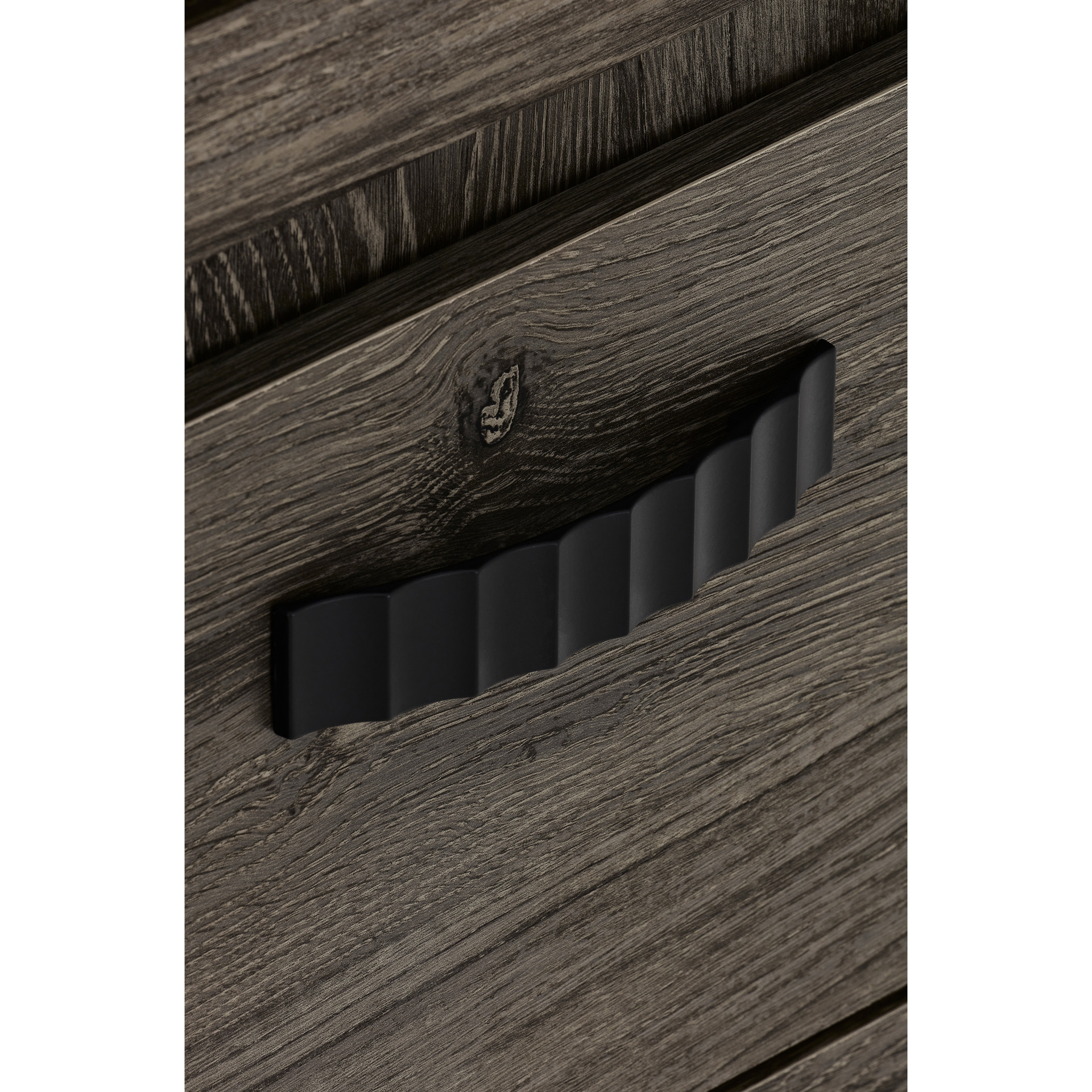 The textured black handles bring a refined touch, and the sturdy legs provide optimal stability. Compact yet cleverly designed, it fits perfectly in bedrooms of any size.
