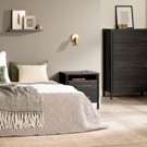 This contemporary nightstand can fit into any decor! It shines thanks to its thin, minimalist handles and square legs, which give it a sleek, trendy look. Pair it with other pieces from our Gravity collection for a complete look!