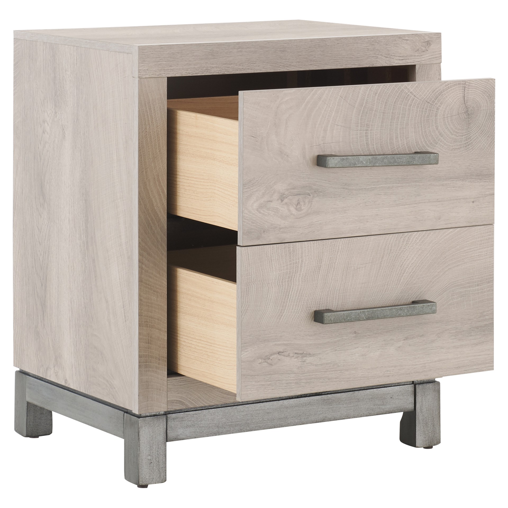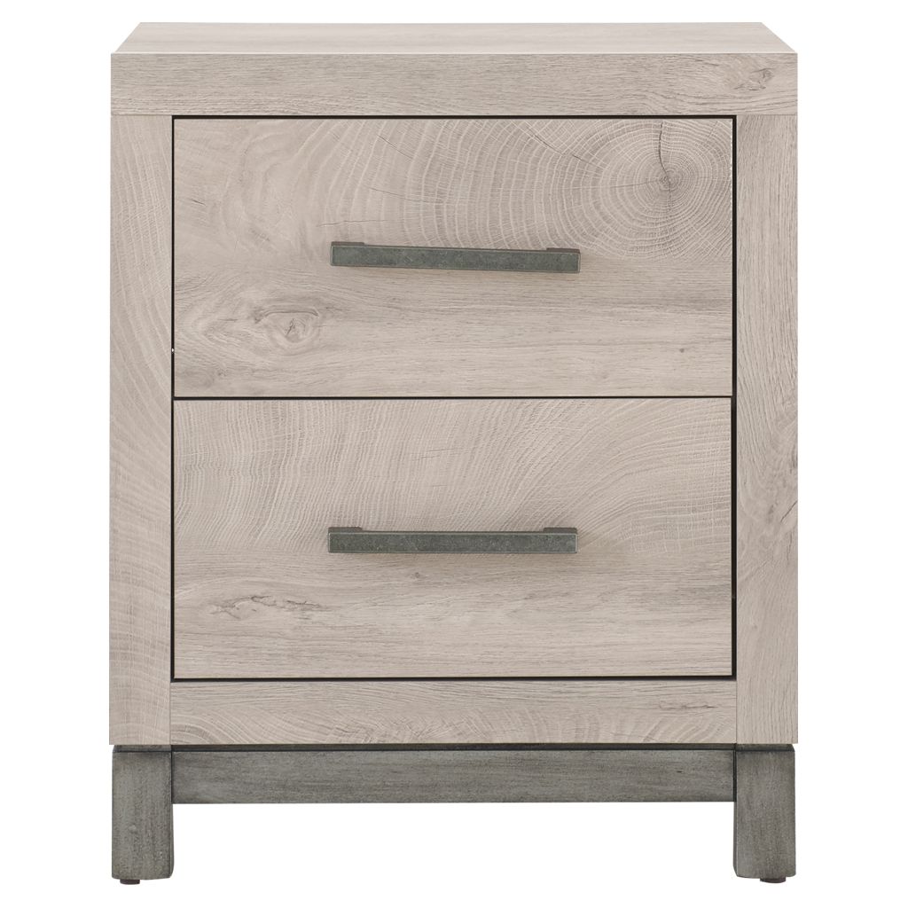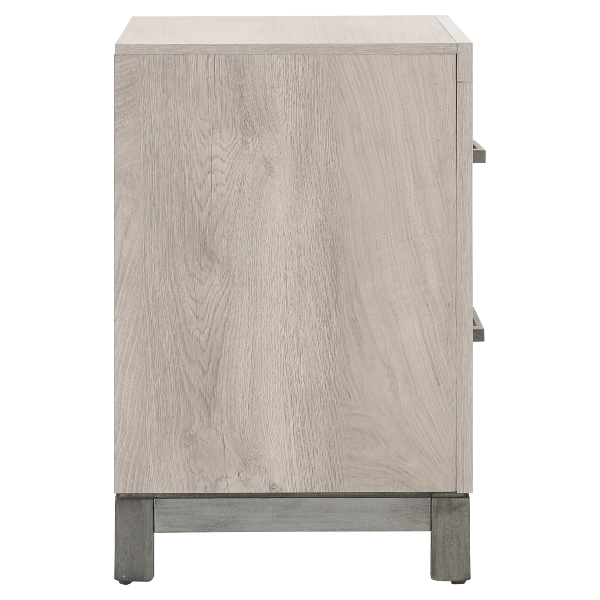 This elegant nightstand combines natural charm with everyday practicality. Its light wood finish with visible grain adds warmth to your bedroom, while the metallic-accent handles bring a subtle contemporary touch.