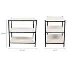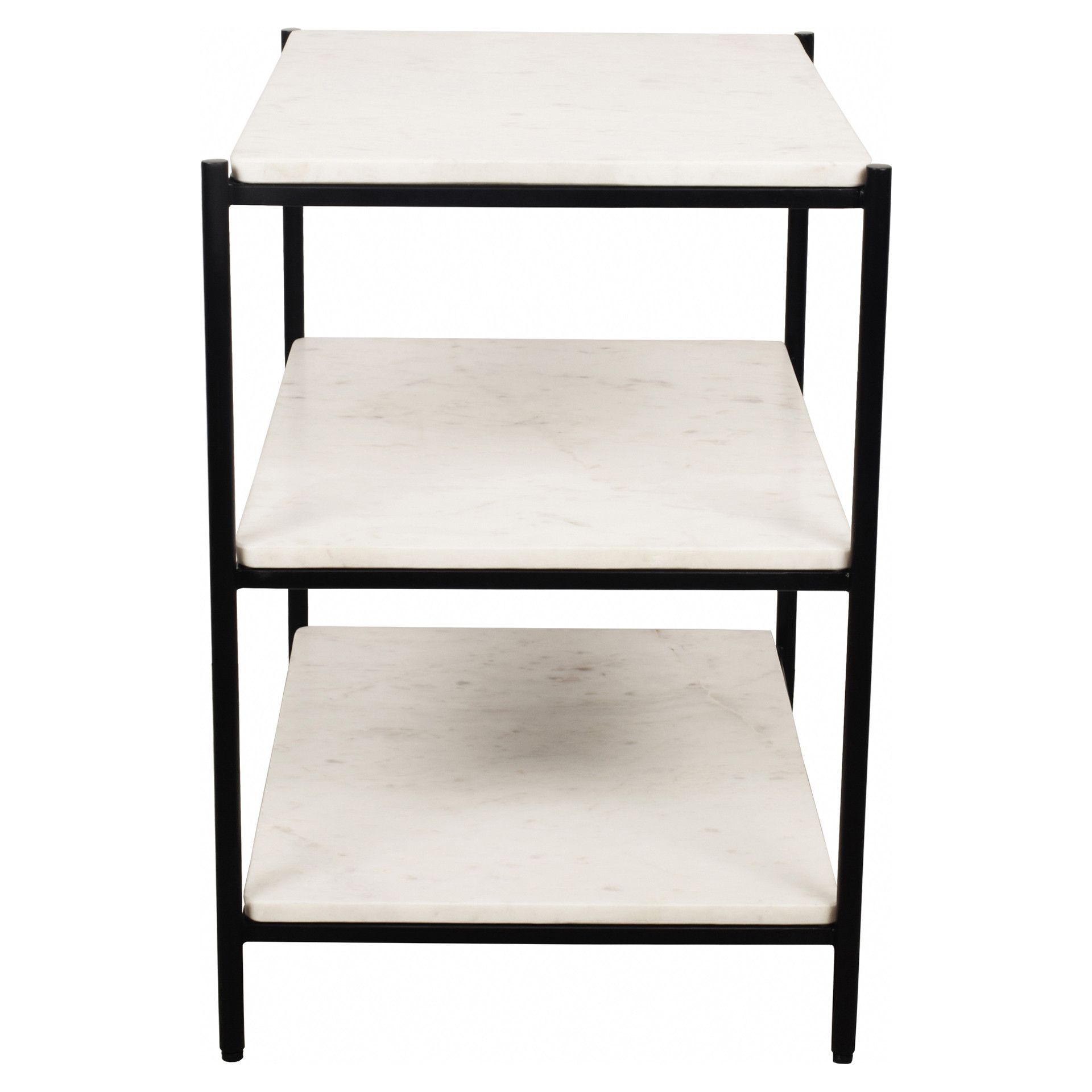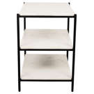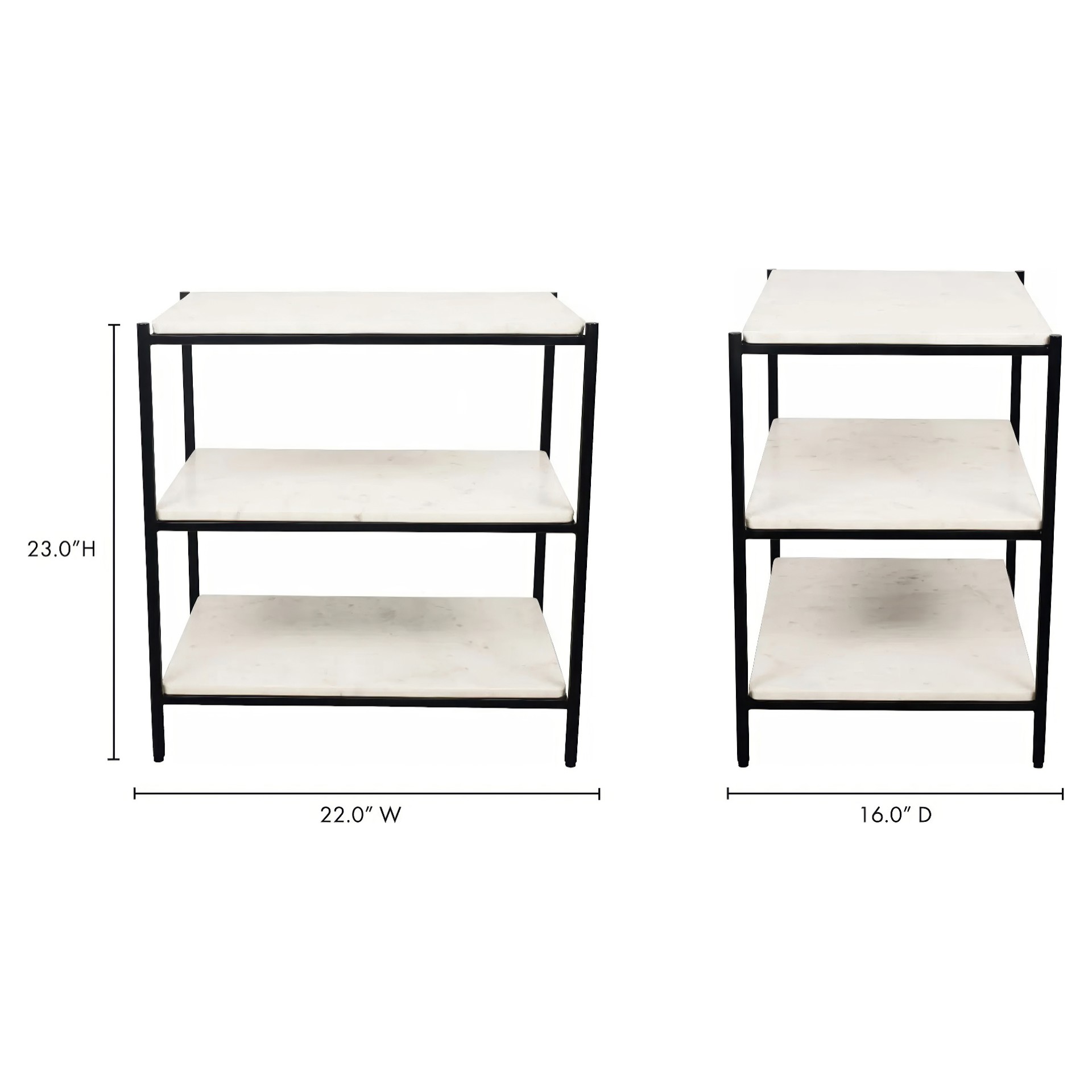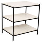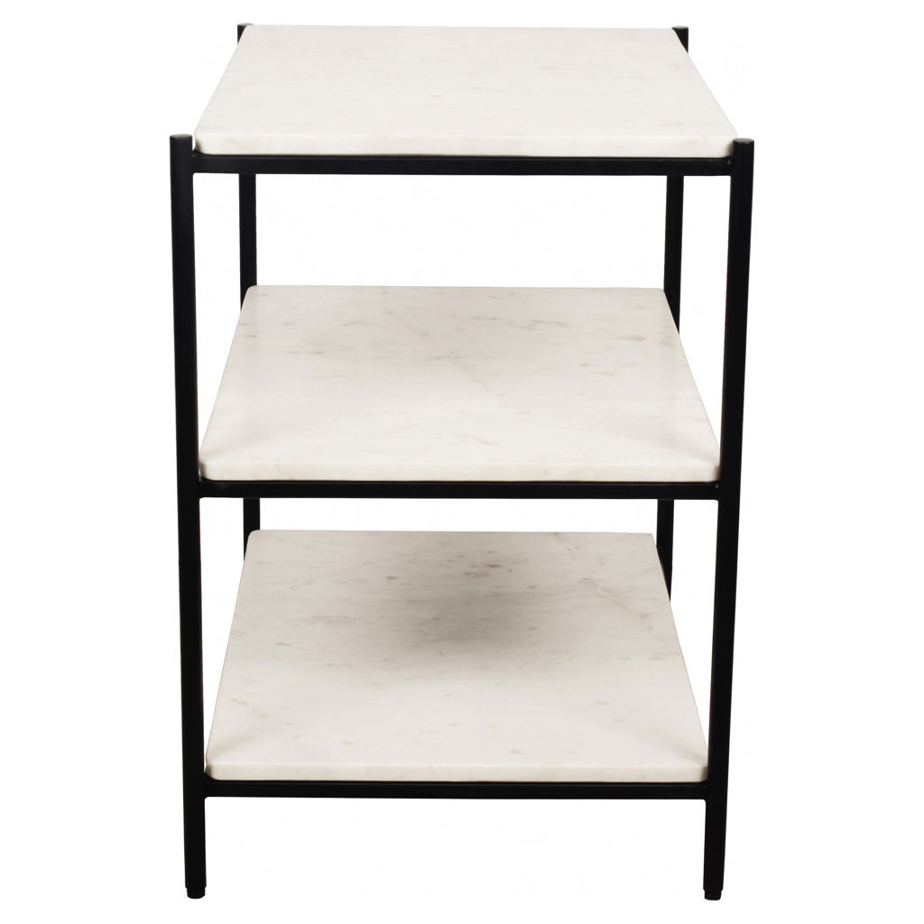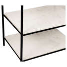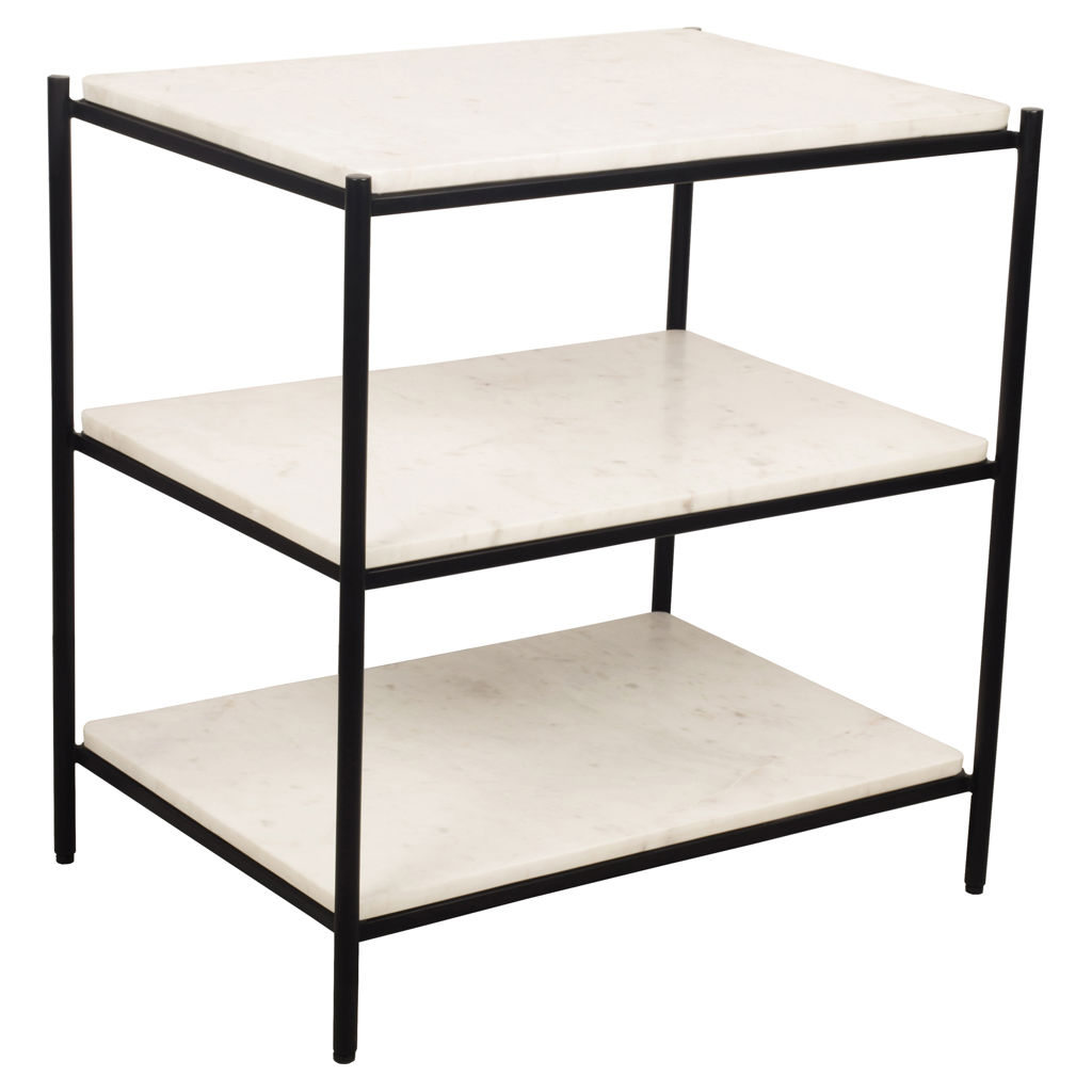 Three tiers of white marble are joined together by a sturdy semi-gloss iron frame to create something that is as functional as it is elegant.