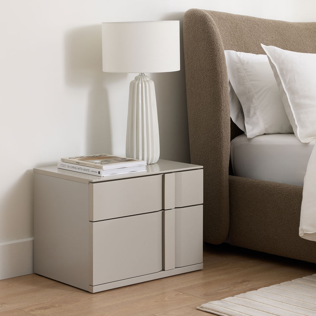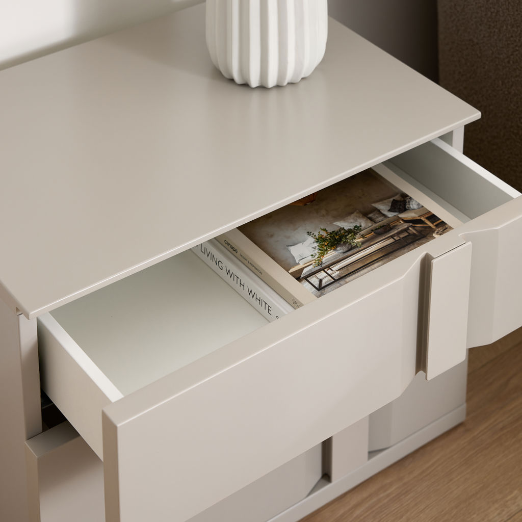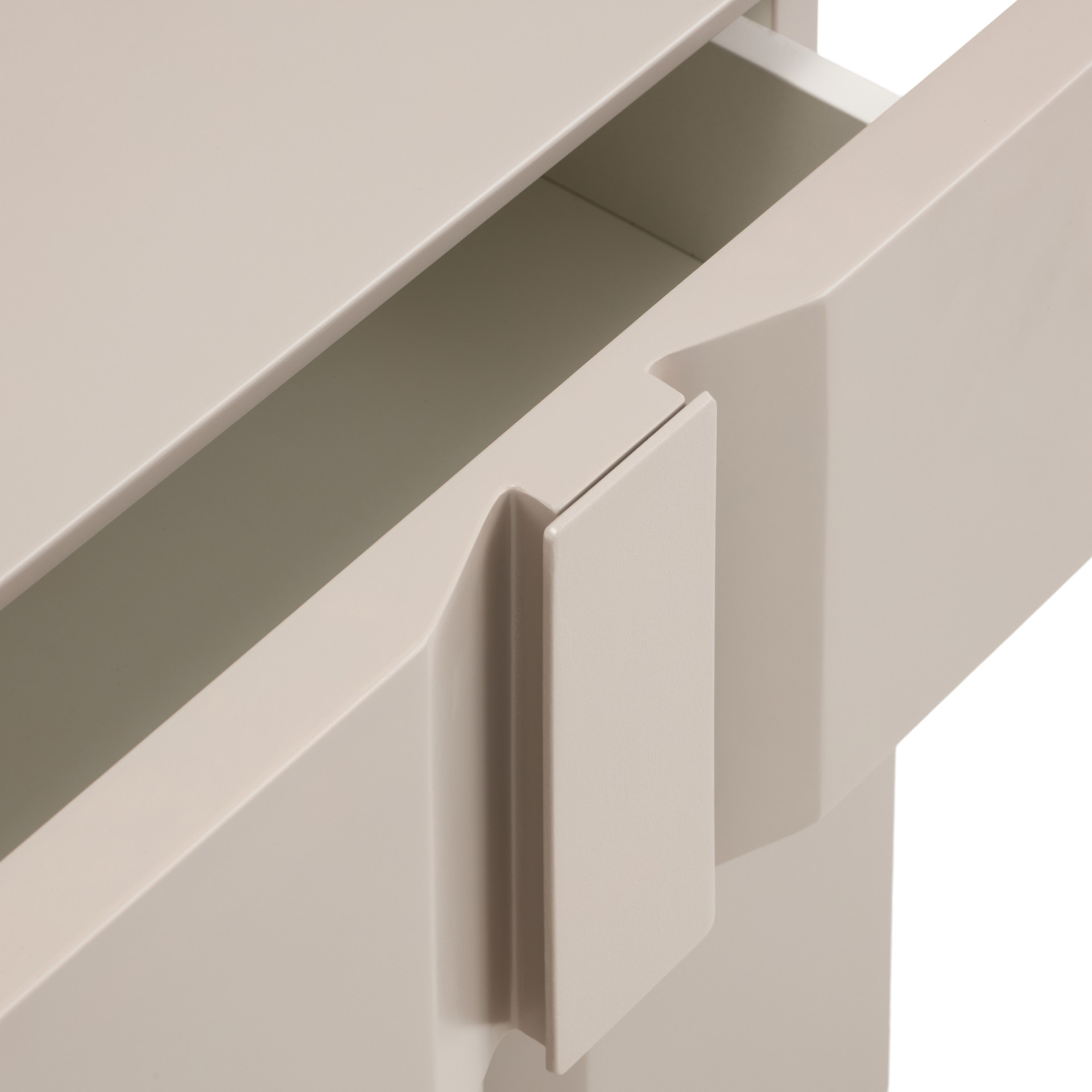 This nightstand combines functionality and refinement with its flawless finish in soothing neutral tones. Its clean lines and balanced proportions blend effortlessly into any décor.