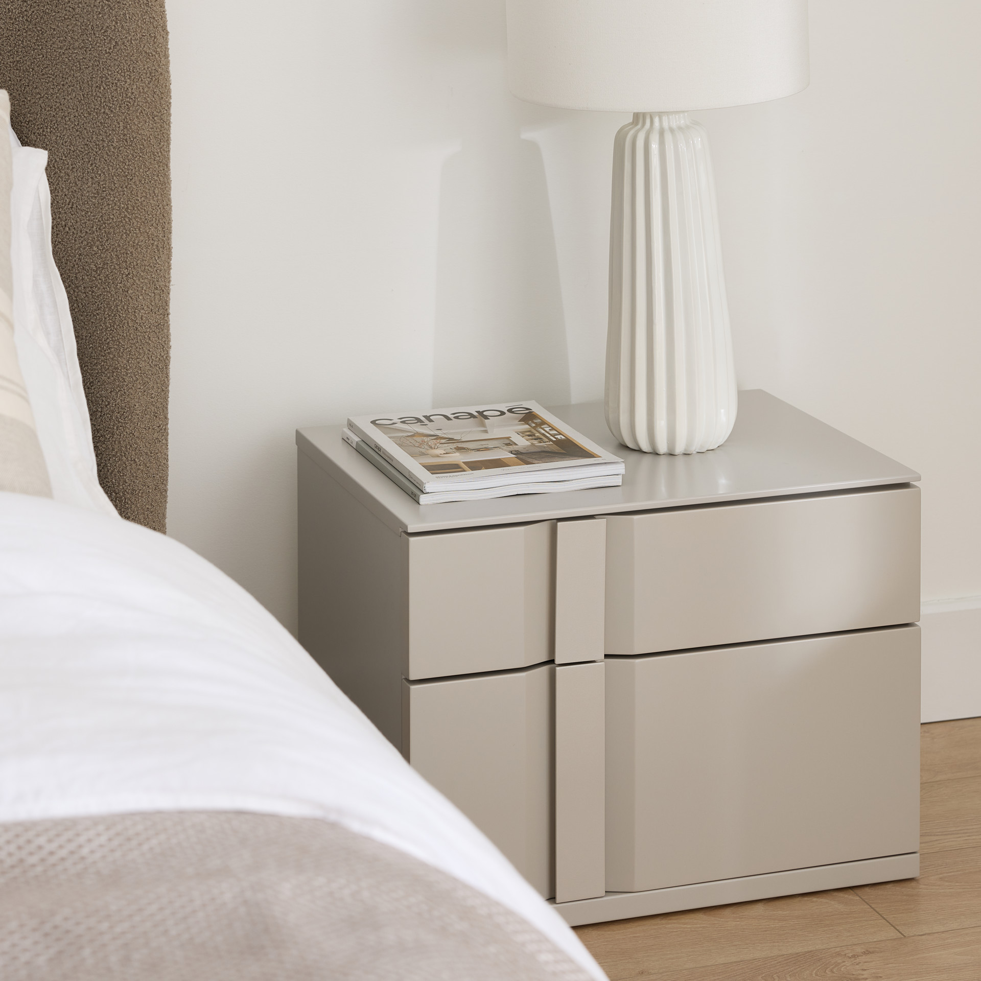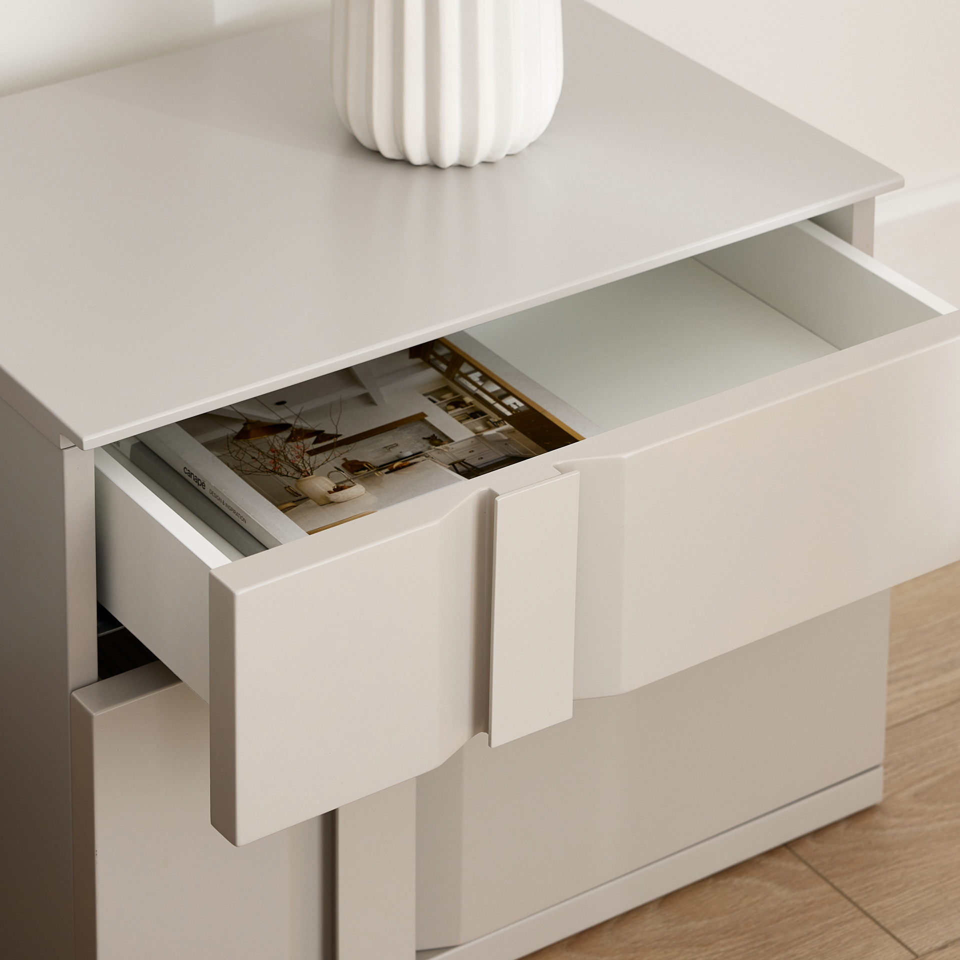 This nightstand combines functionality and refinement with its flawless finish in soothing neutral tones. Its clean lines and balanced proportions blend naturally into any décor.