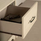 VERSATILE LOOK: This bedside nightstand with contemporary, clean lines and contrasting metal handles will blend with any bedroom décor or furniture.