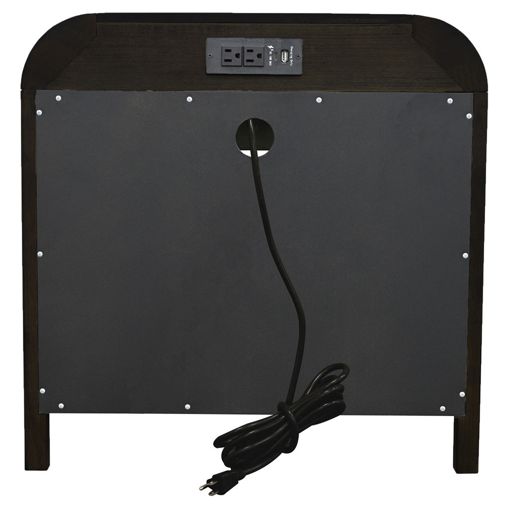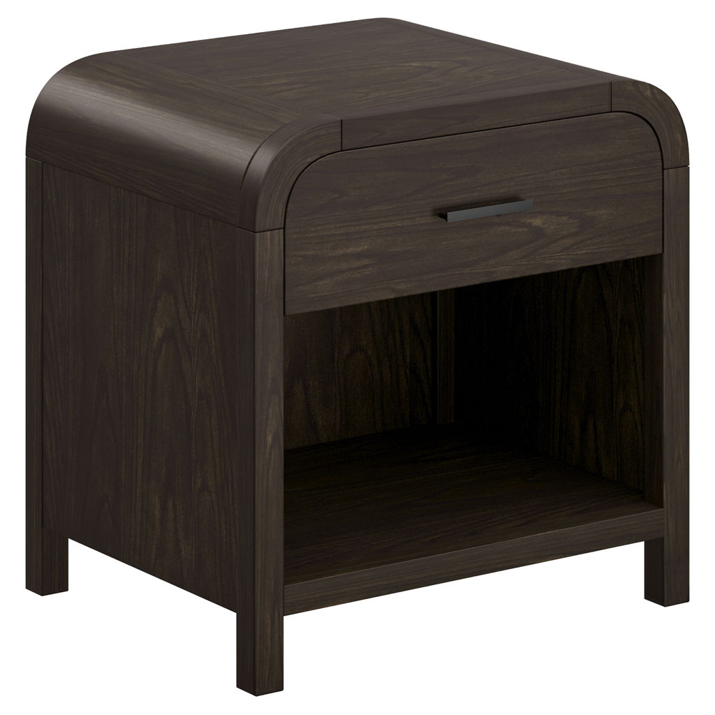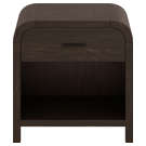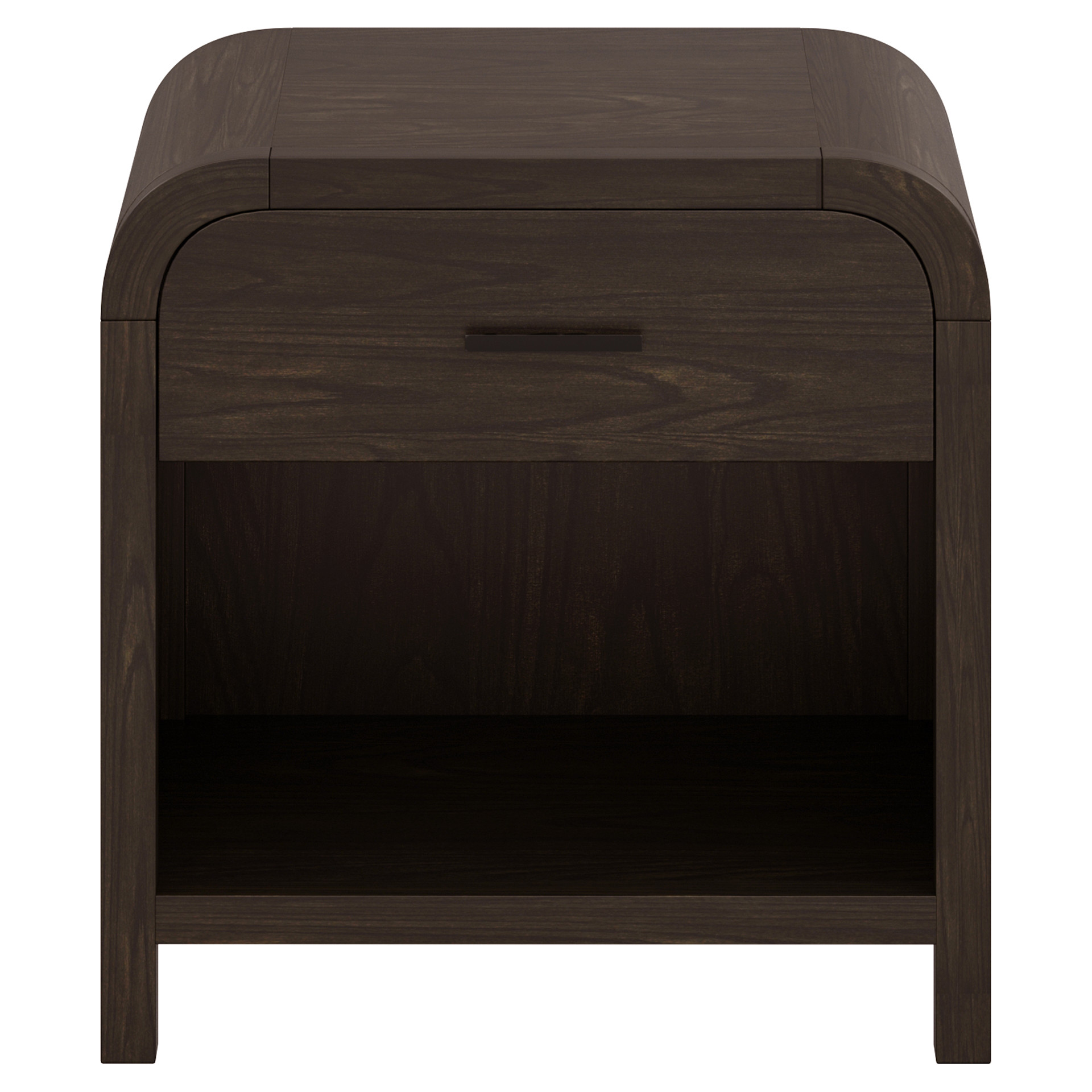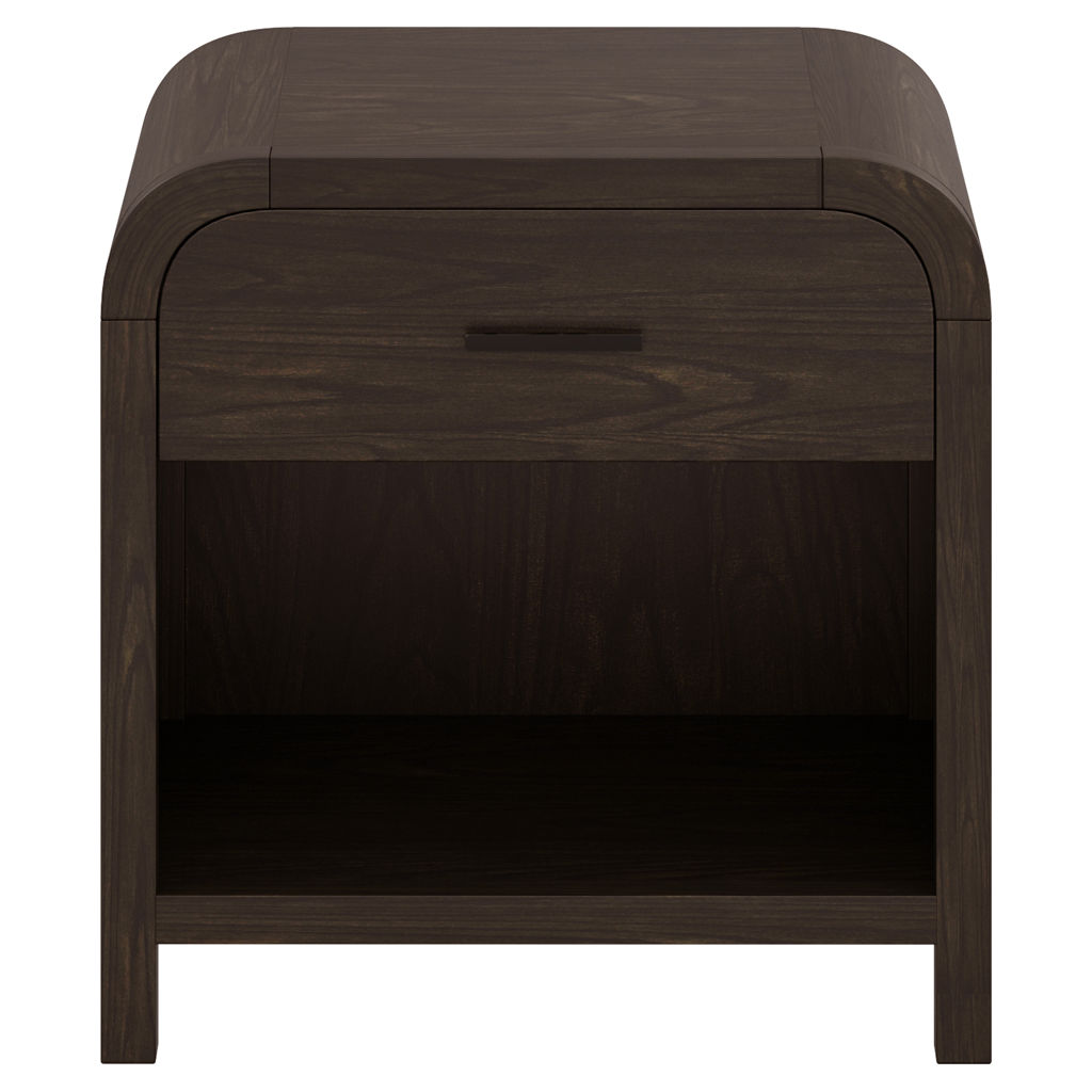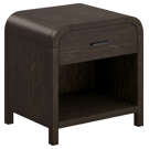 Embrace the curves with this beautiful 1-drawer accent table. The rich, wood-grain finish will work well with any décor style. The open shelf and fully extending drawer offer plenty of storage space and the charging station is an added convenience. Great as a bedside table, or by a sofa or accent chair in the living room.