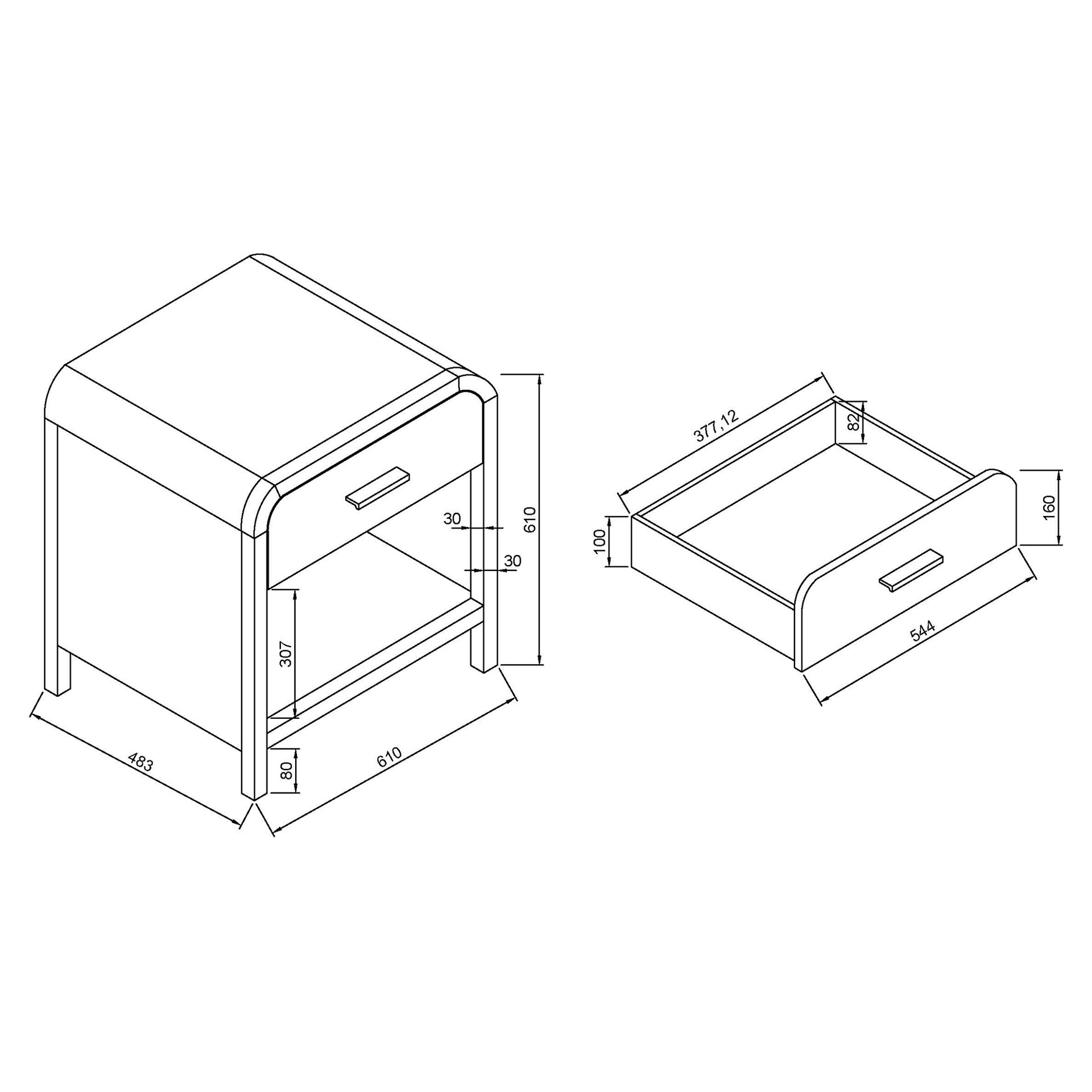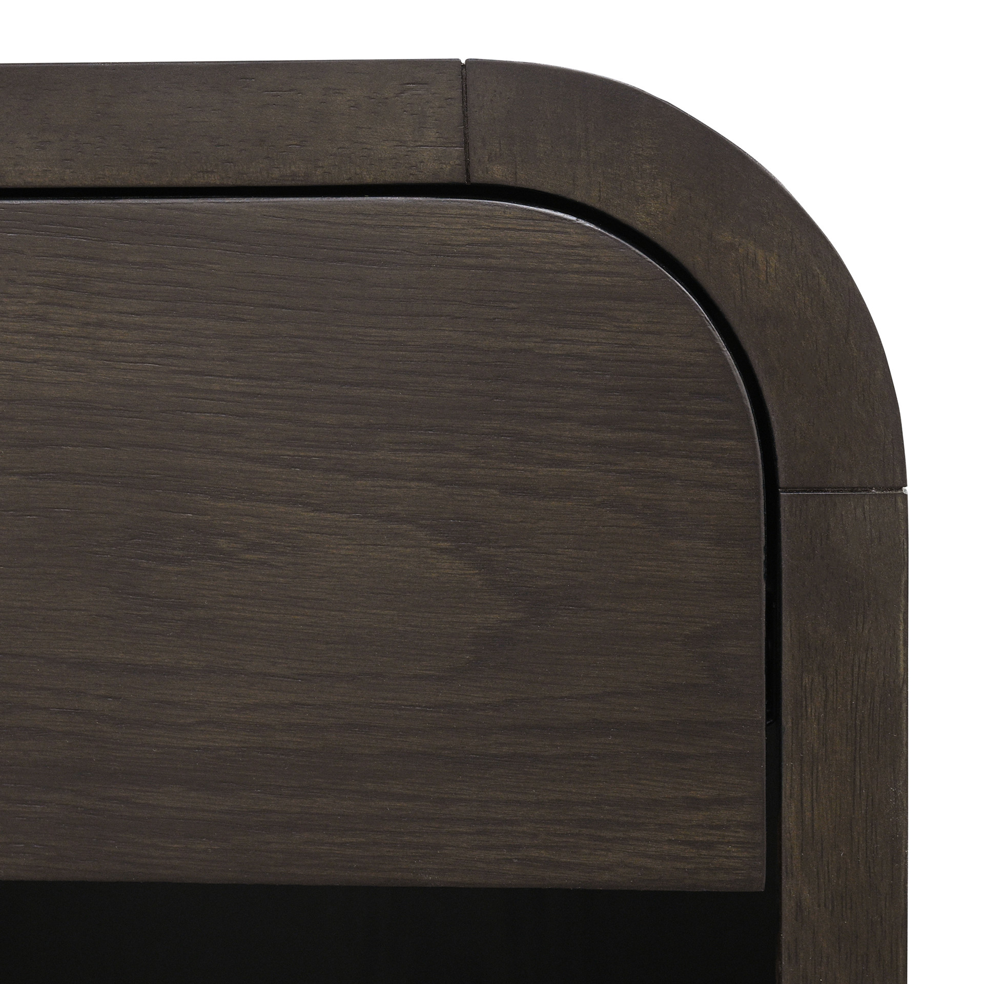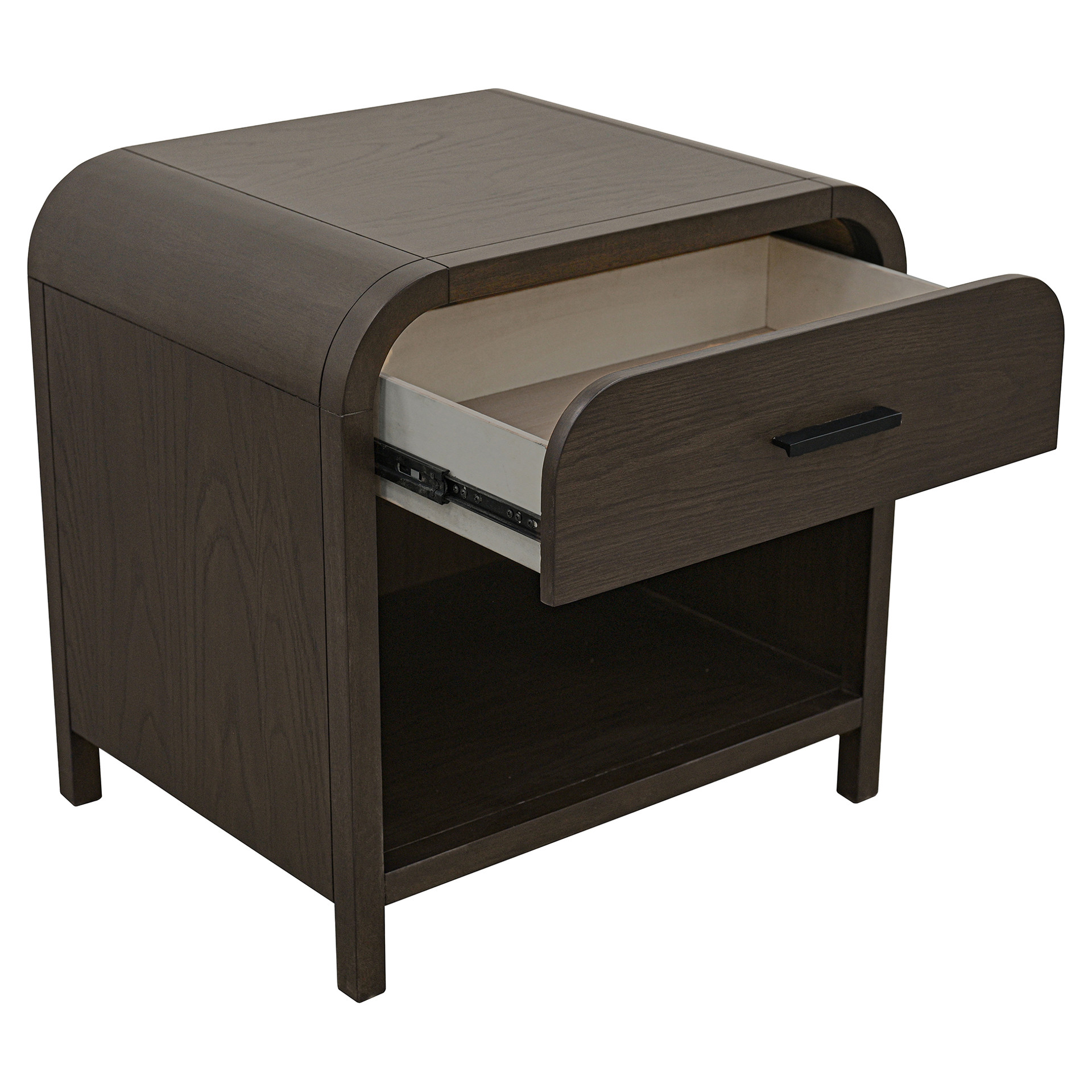 Embrace the curves with this beautiful 1-drawer accent table. The rich, wood-grain finish will work well with any décor style. The open shelf and fully extending drawer offer plenty of storage space and the charging station is an added convenience. Great as a bedside table, or by a sofa or accent chair in the living room.