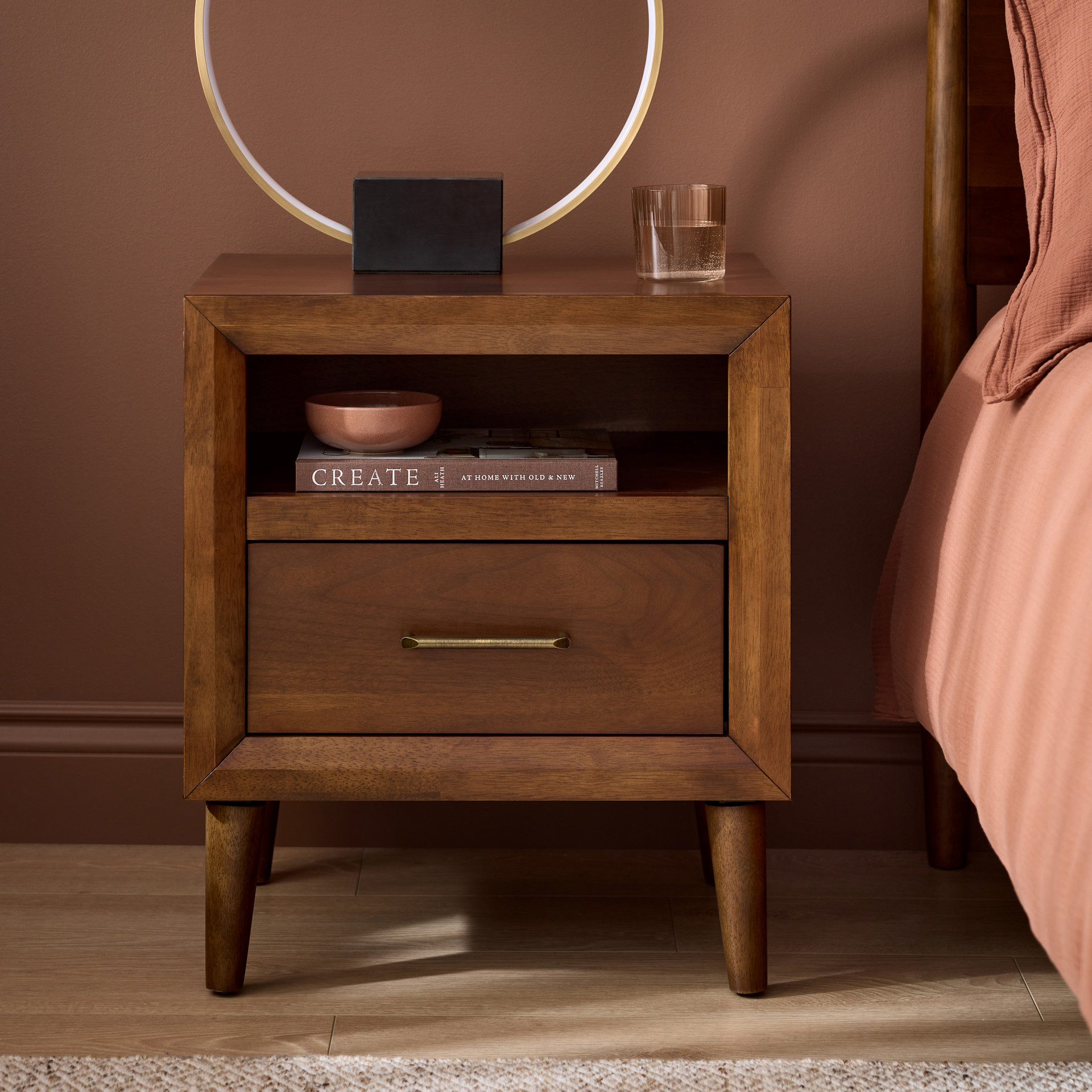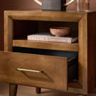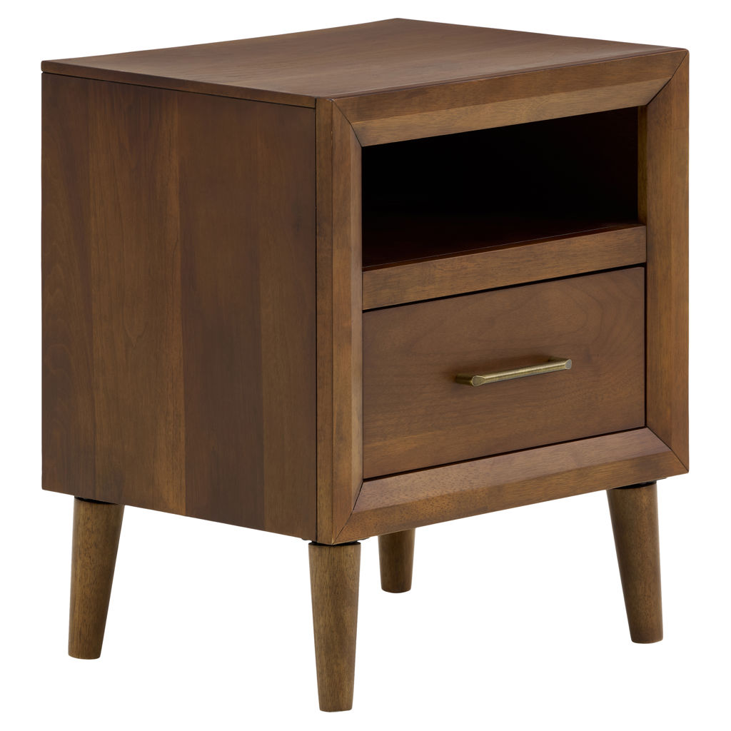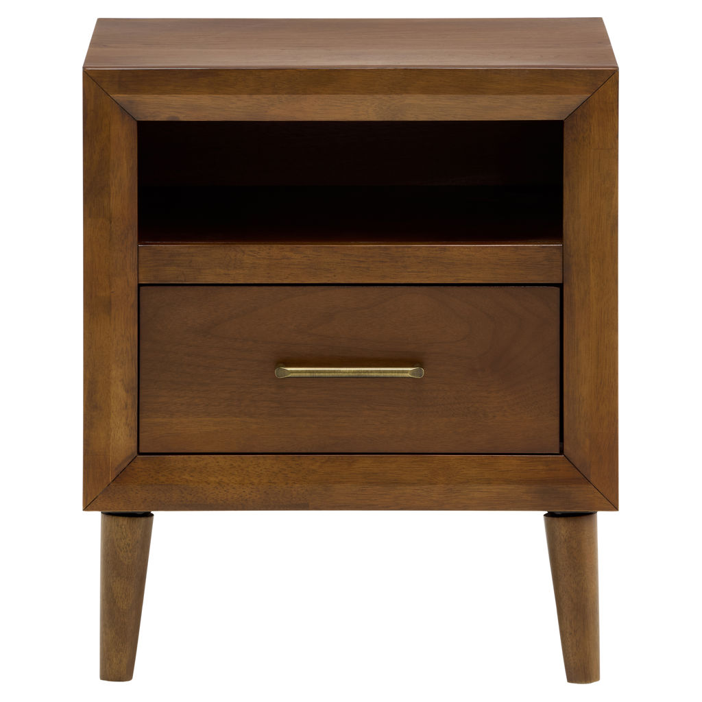 More than just a small storage unit, the Bettie wooden nightstand becomes a decorative piece that combines style and everyday practicality. Its slender silhouette and natural walnut finish bring a warm, sophisticated touch that blends seamlessly with a variety of interior styles.