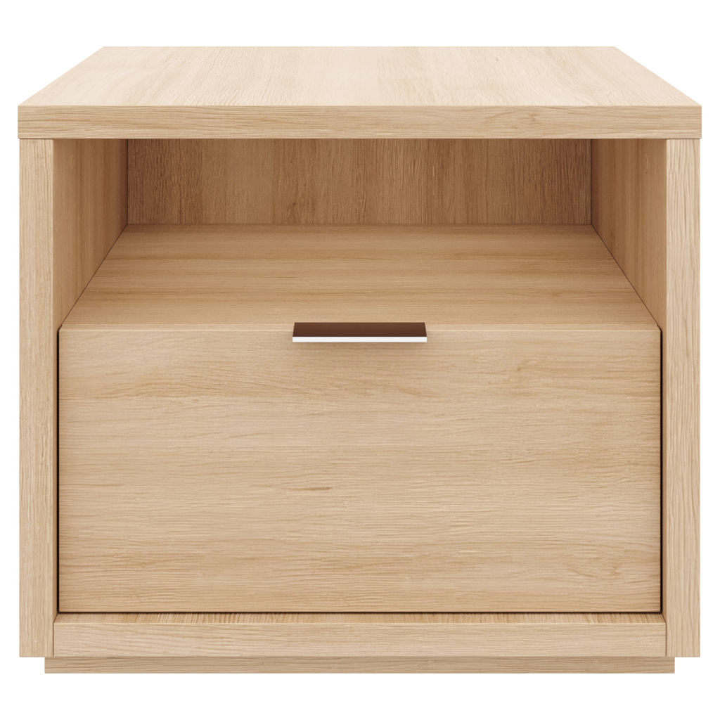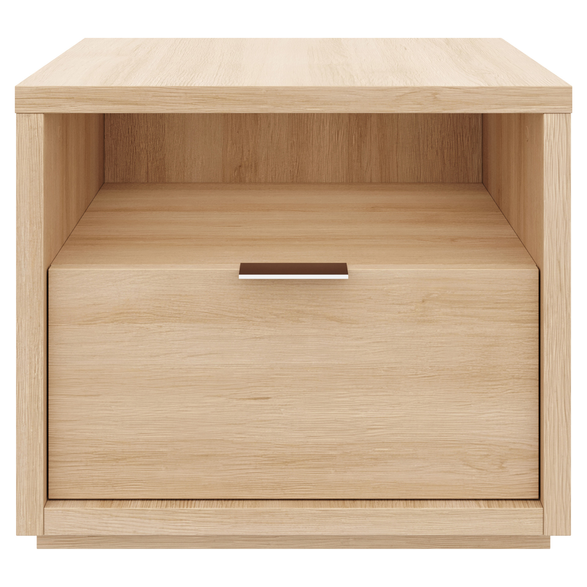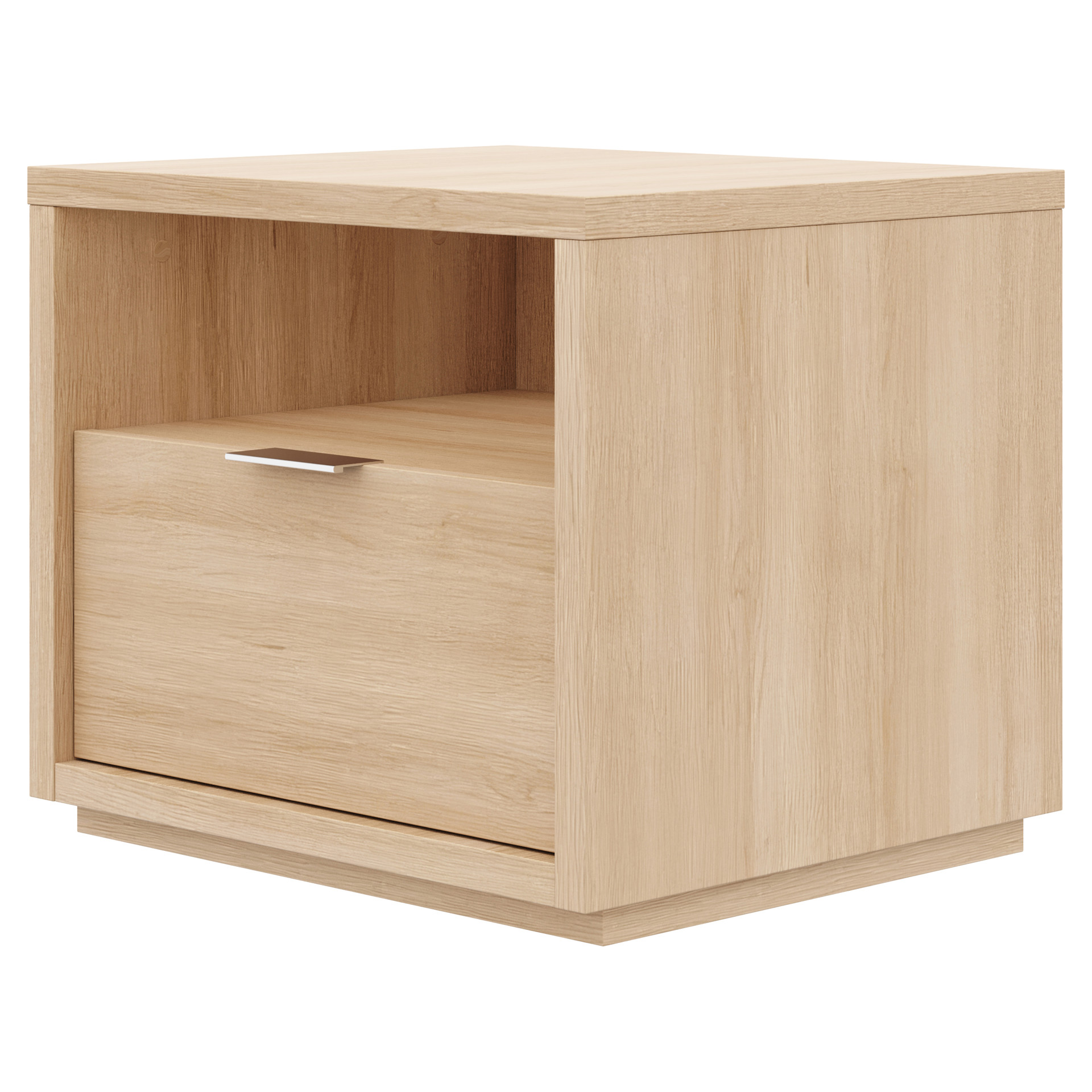 The nightstand's rich Natural blond oak finish will give your bedroom a Scandinavian vibe while adding convenient storage.