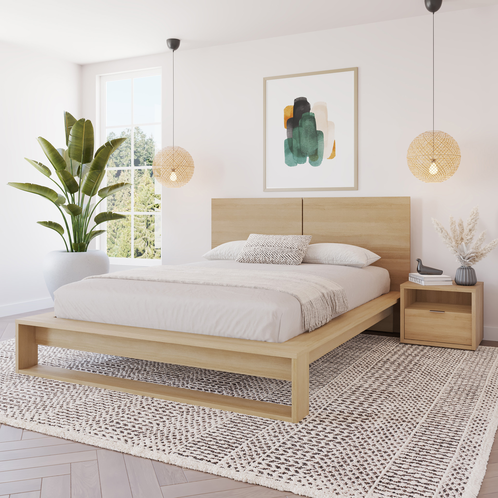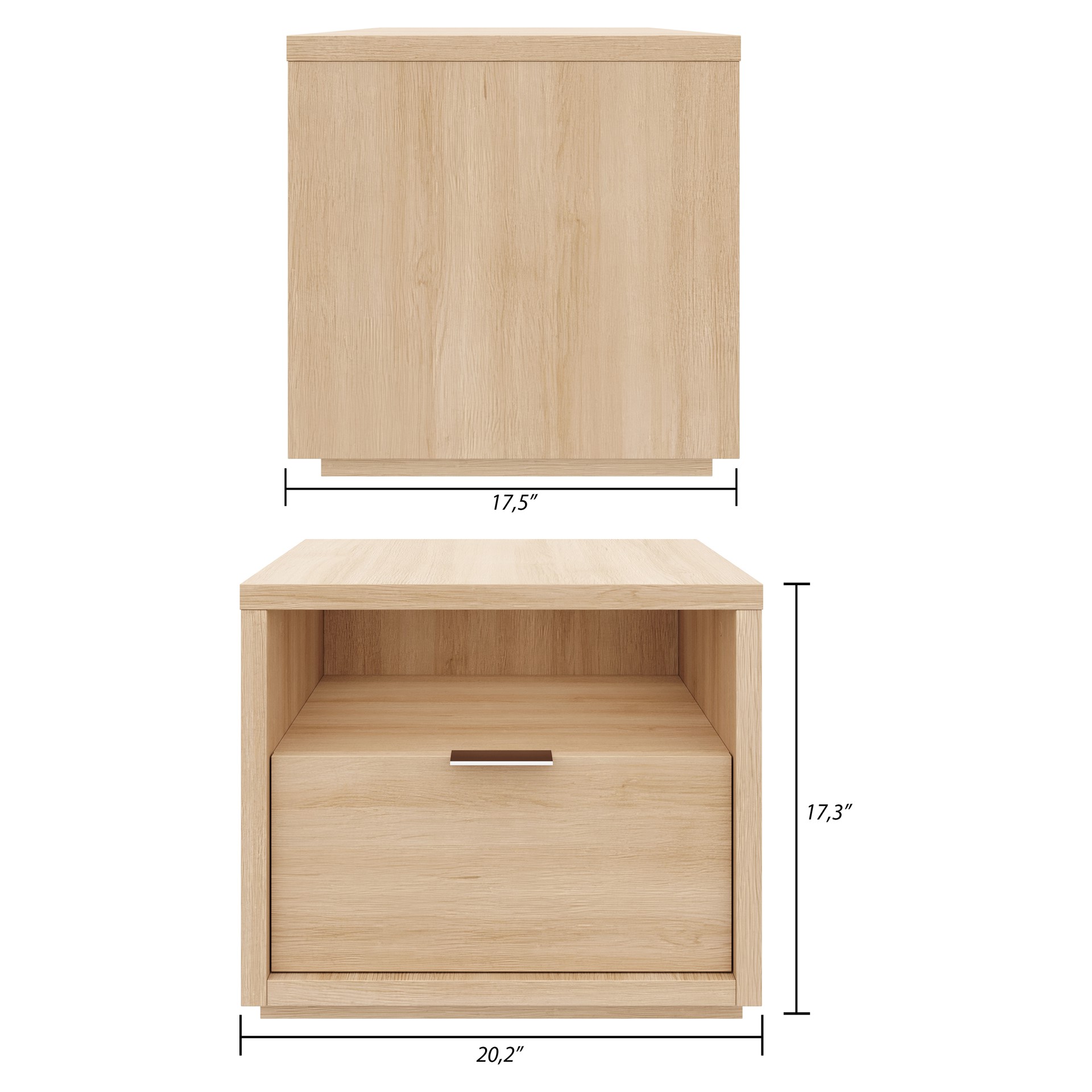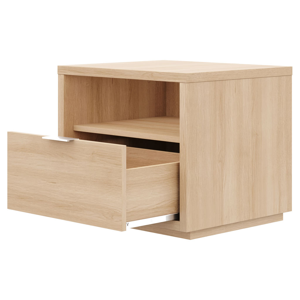 The nightstand's rich Natural blond oak finish will give your bedroom a Scandinavian vibe while adding convenient storage.