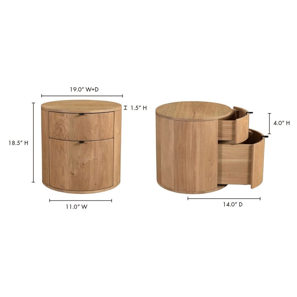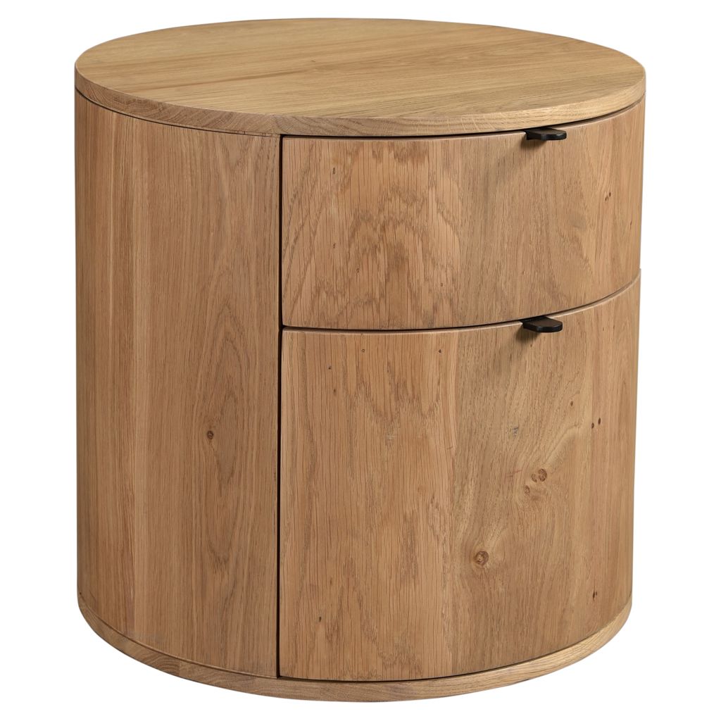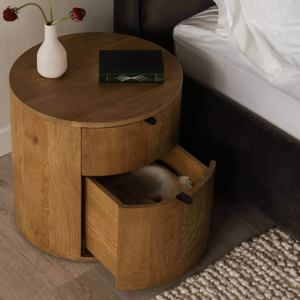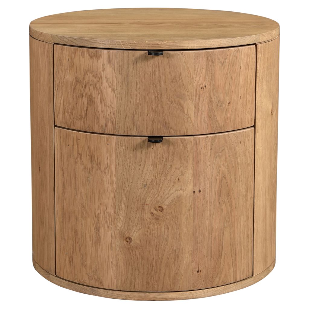 Full of natural appeal in solid oak, the Theo two drawer nightstand features a curved, minimalist design.