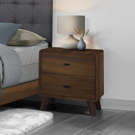 Add charm and functionality to your bedside with this elegant 2-drawer nightstand, featuring a warm walnut finish on all sides.