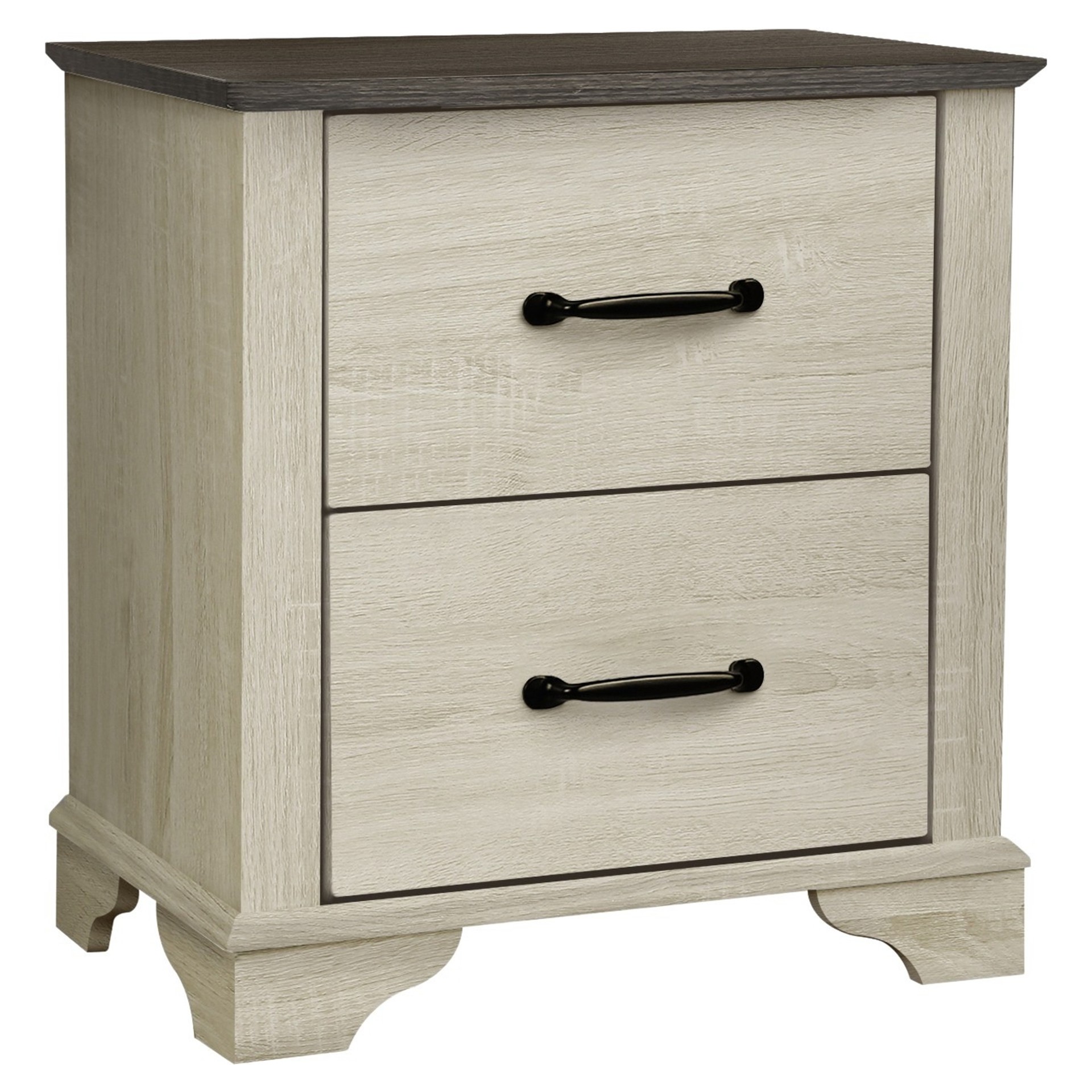 Combine functionality and transitional form with this striking two drawer nightstand.