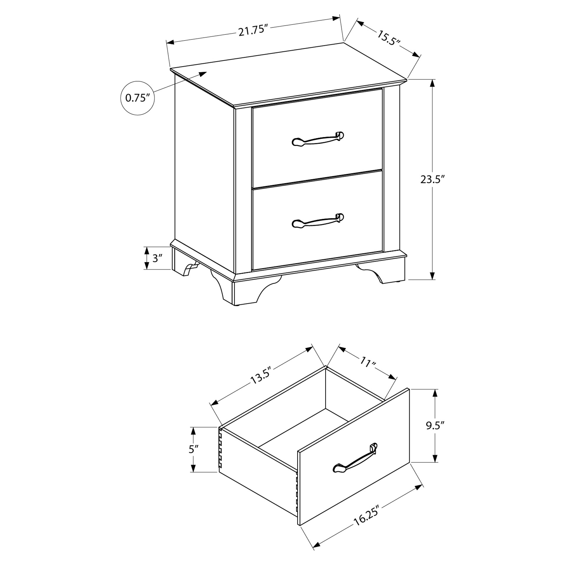 • Number of drawers : 2 drawers
