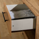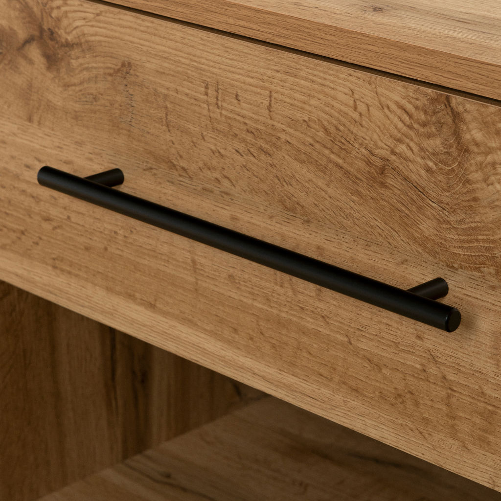 Its clean lines are enhanced by an elegant rounded base, while the metal handle adds a touch of sophistication and value to the piece. Its neutral yet distinctive look makes it perfect for elevating any bedroom.