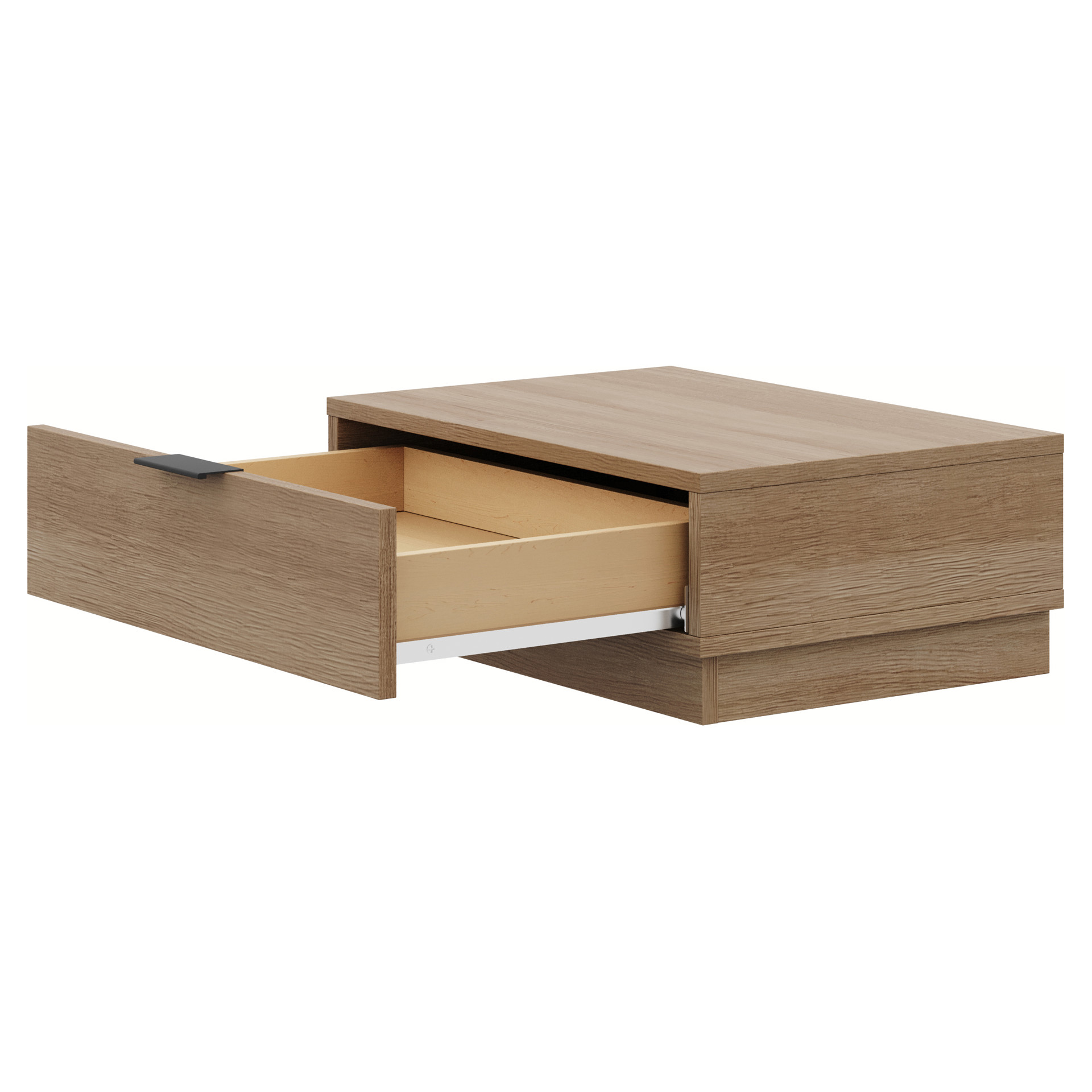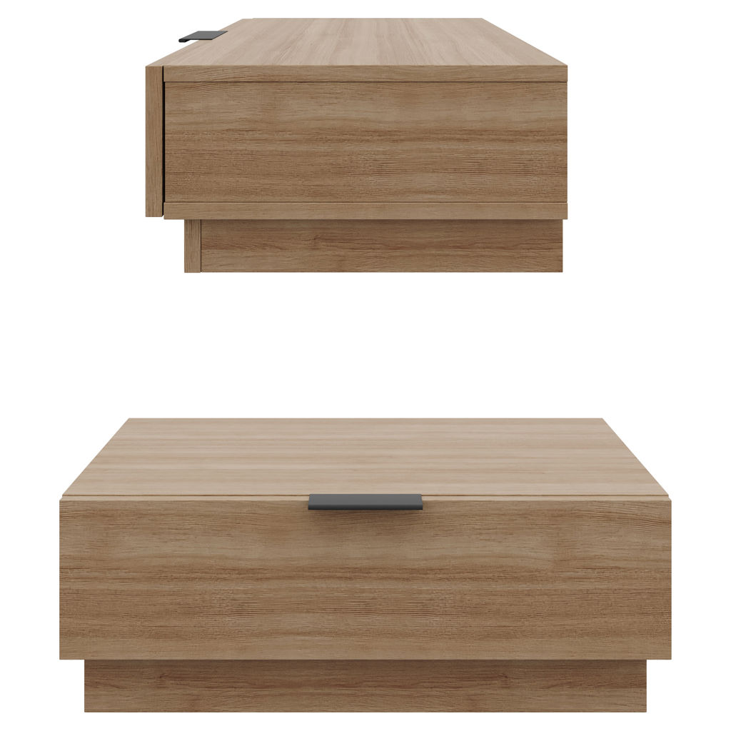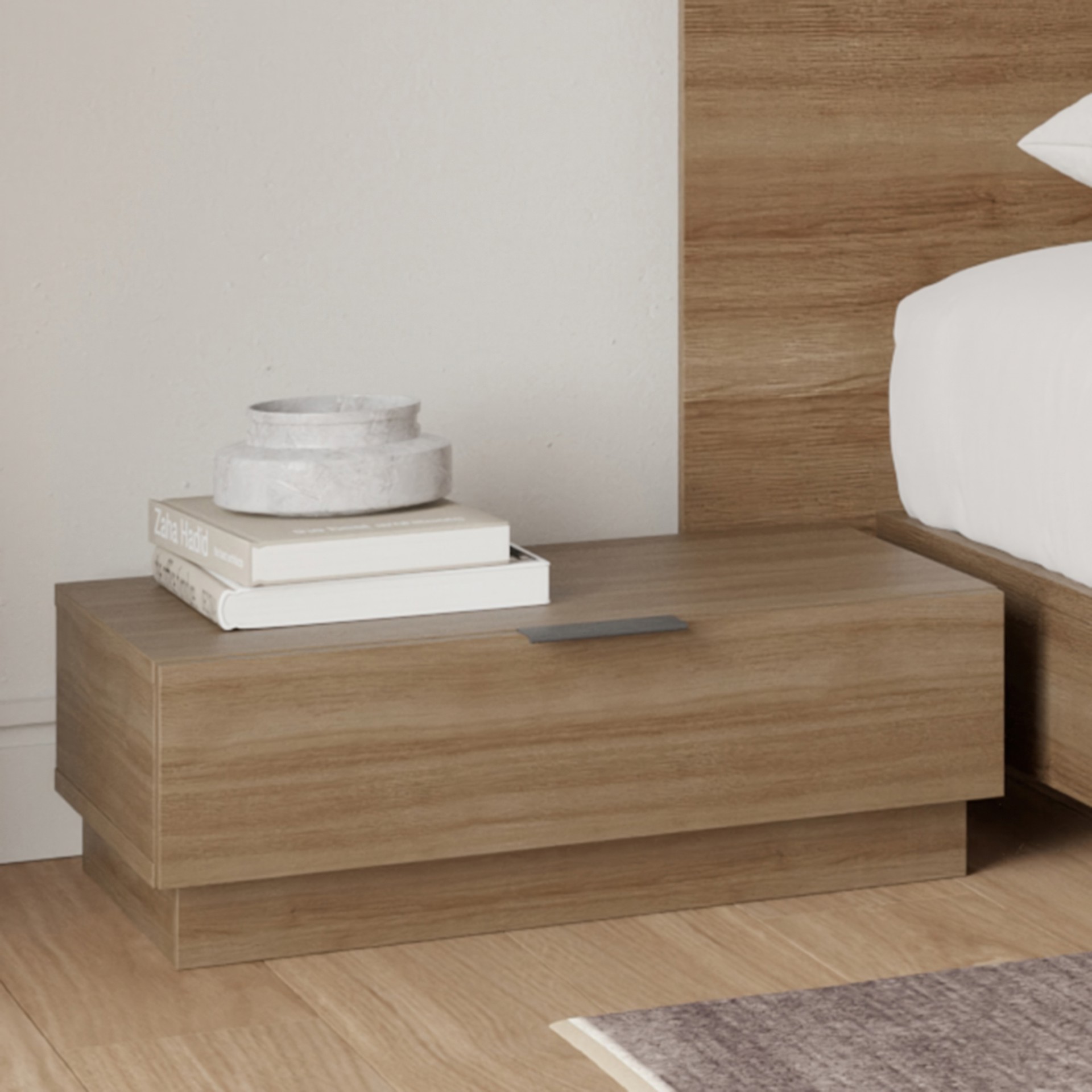 Each nightstand features a spacious drawer, ideal for organizing everyday items. Their sturdy construction ensures long-lasting durability, and the discreet metal handle adds a refined accent. A practical choice for a tidy and welcoming bedroom.