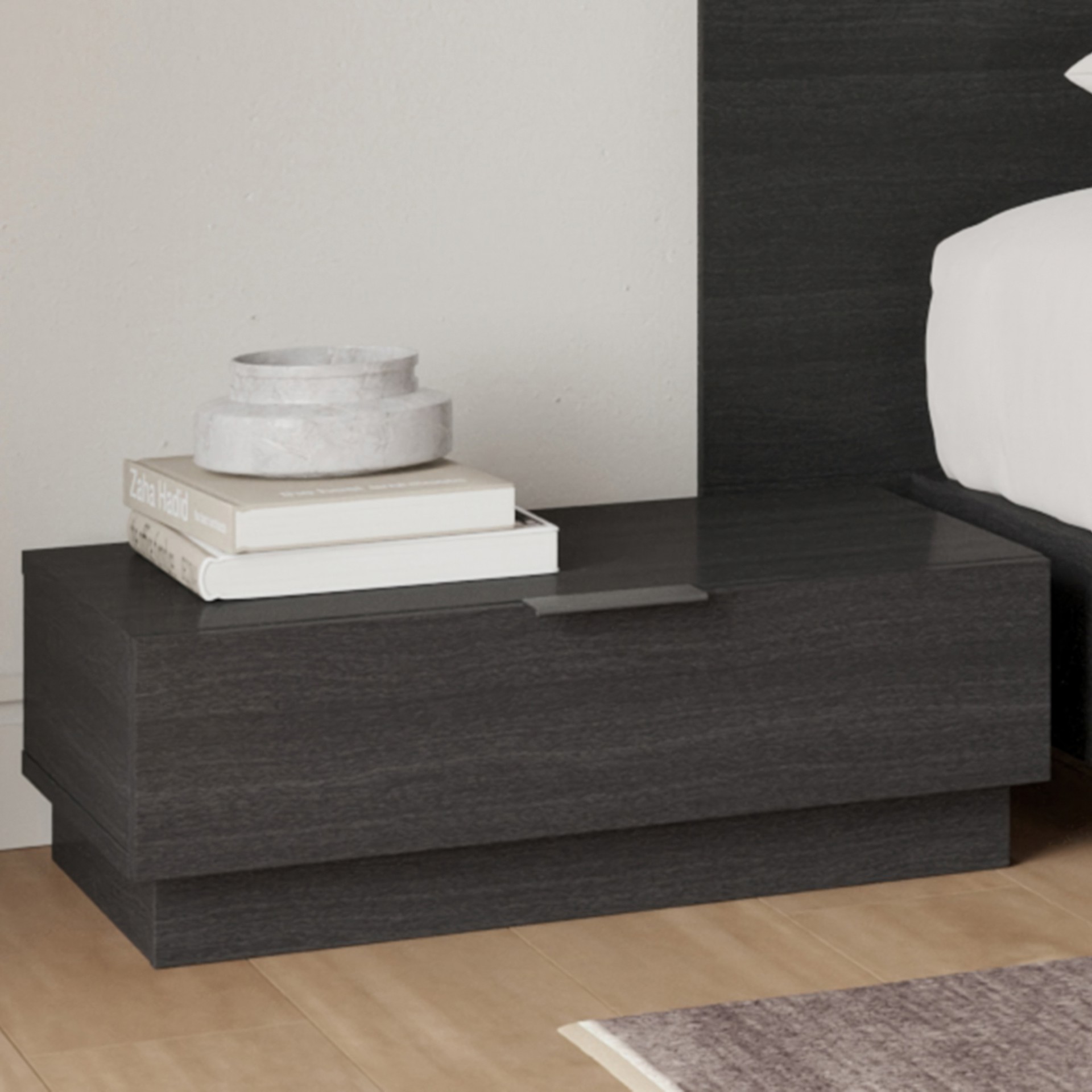 Each nightstand features a spacious drawer, ideal for organizing everyday items. Their sturdy construction ensures reliable durability, and the discreet metal handle adds a refined touch. A practical choice for a tidy and welcoming bedroom.