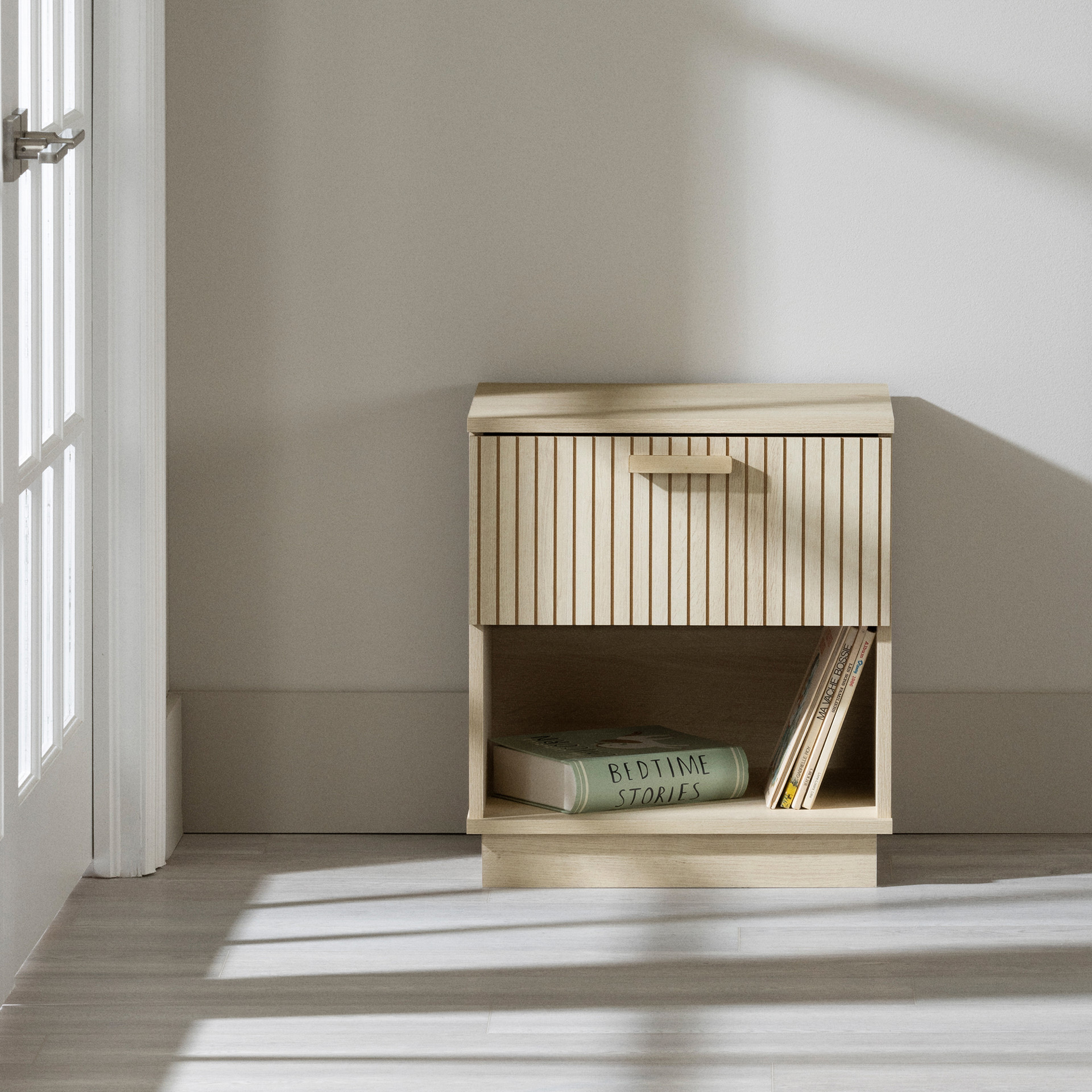 Inspired by contemporary design, this nightstand pairs effortlessly with other furniture from the same collection. The slatted effect on the drawer front enhances its modern appeal.